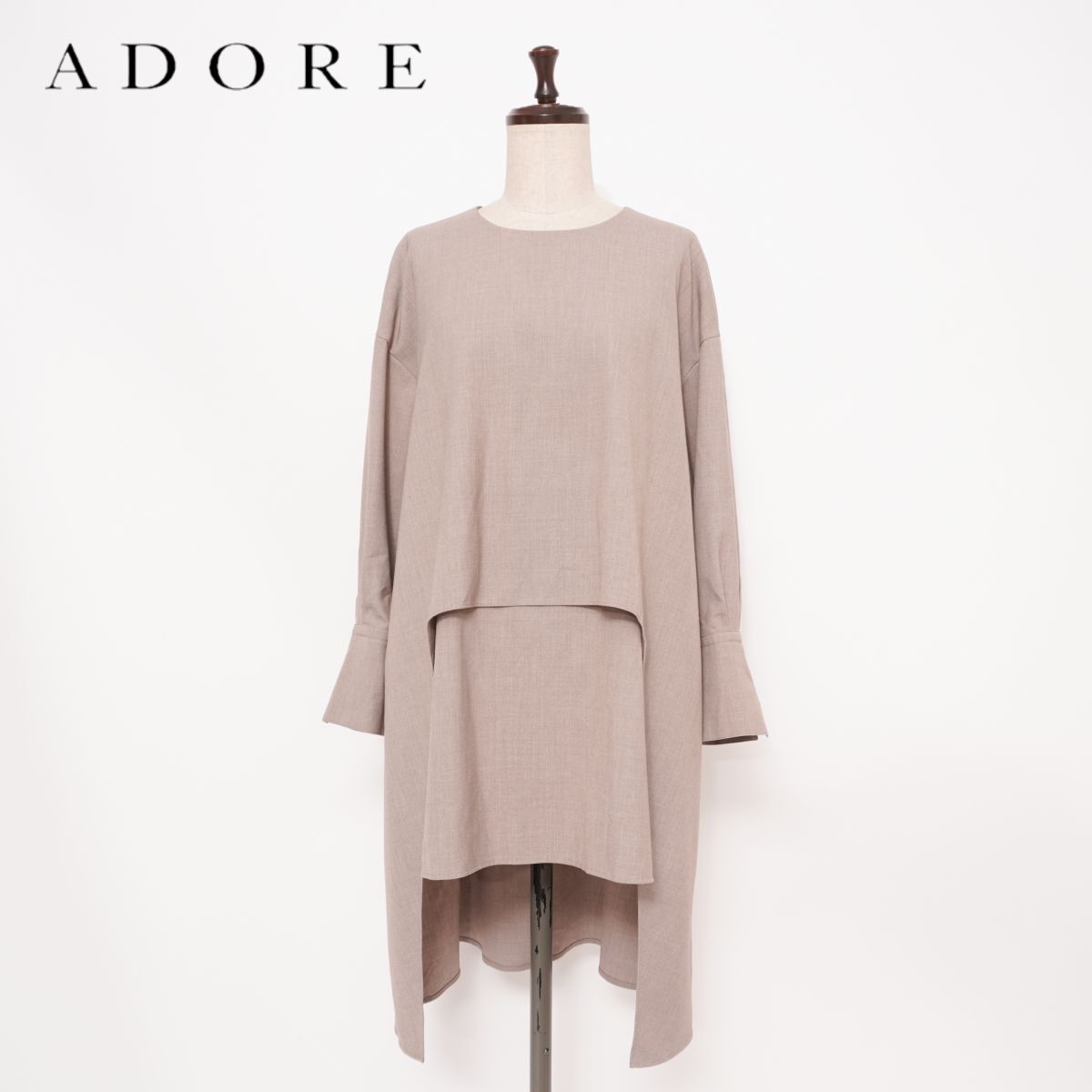 ADORE アドーア クリアライトロングブラウス レイヤード風 長袖 トップス ストレッチ 菜々緒着用 レディース グレージュ サイズ38*GD911