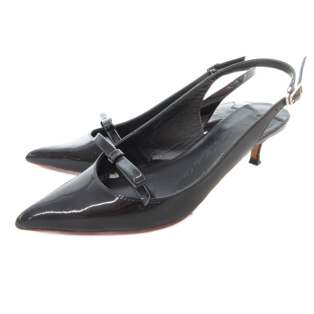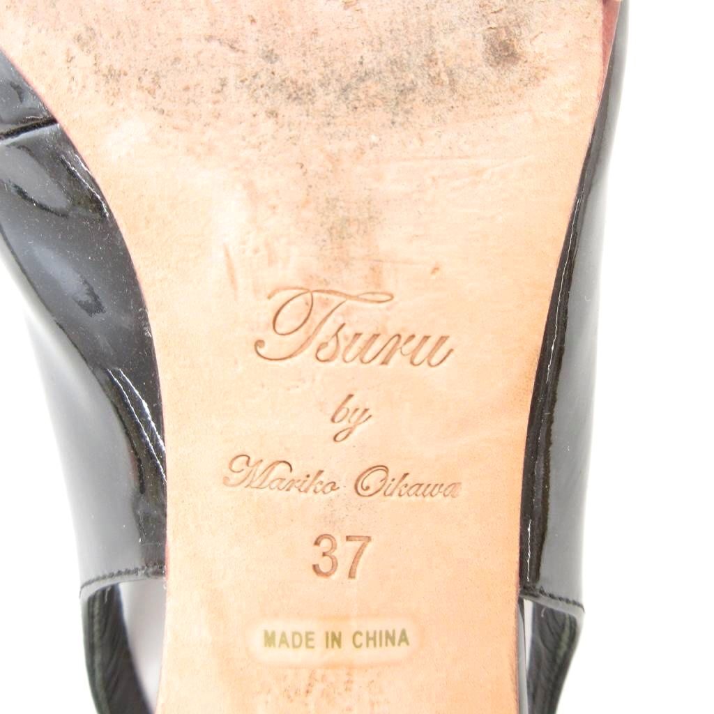 ツル バイ マリコオイカワ TSURU by Mariko Oikawa パンプス シューズ リボン ストラップ ハイヒール 37 黒 ブラック /AE レディース