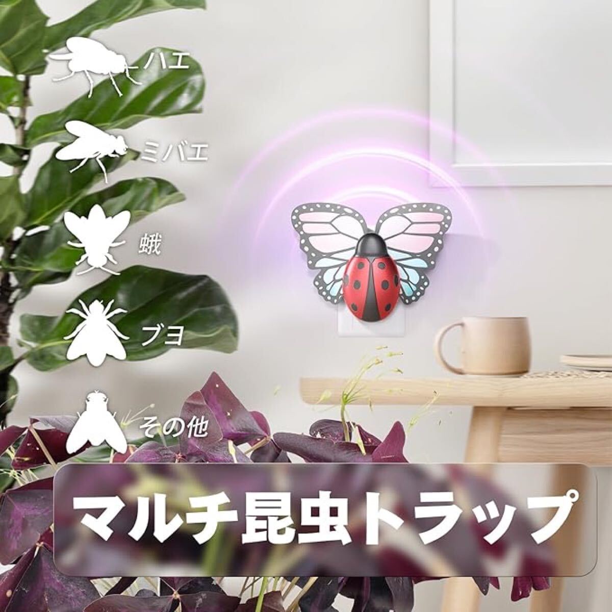 【プラグ アンド プレイ】すぐに作業を開始して、ハエ、ミバエ、蚊、蛾、ブヨなどを効率的に捕獲します。殺虫成分ゼロ/ニオイゼロで人/ペット/植物に優しい