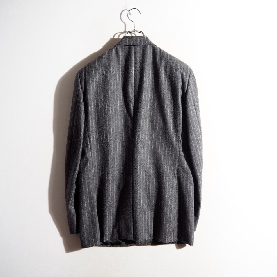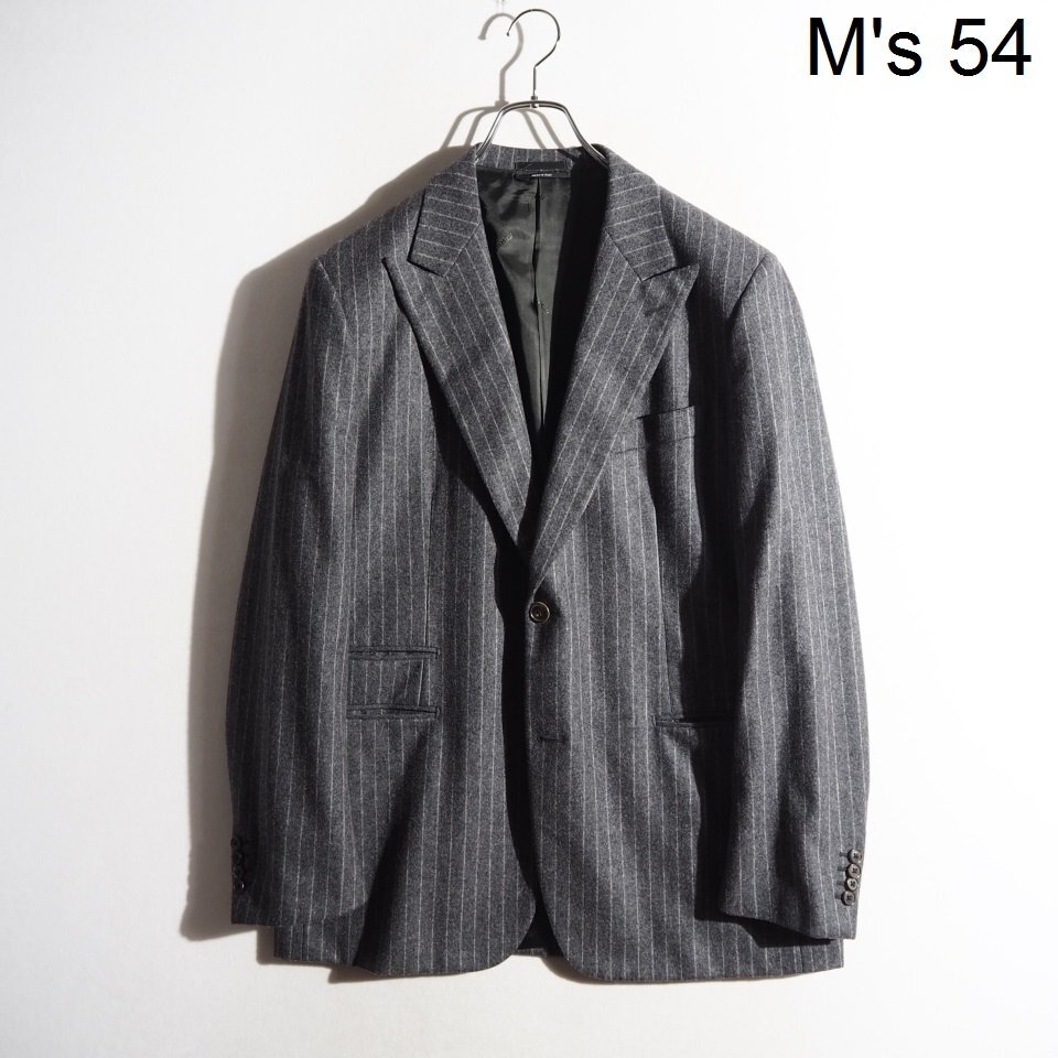 08AW ウールフランネル 2B ピークドラペルジャケット グレーストライプ 54