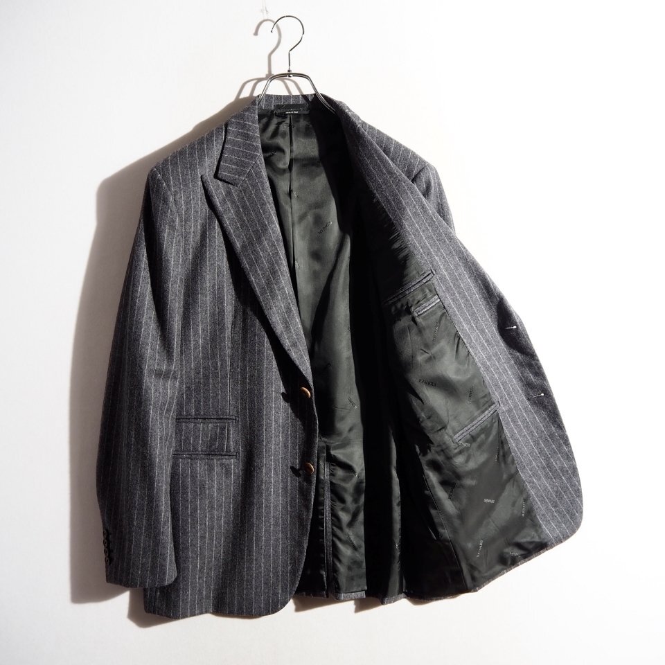 C4229P▼HERMES エルメス▼ ウールフランネル ピークドラペル テーラードジャケット グレー ストライプ 54 Belvest ベルベスト 秋冬 rb mks