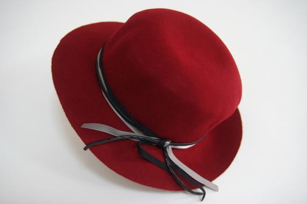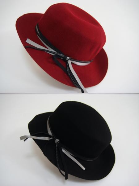 送料無料◆2色組◆百貨店仕様◆婦人帽子◆プレーンカラー◆毛100%◆ウール素材◆調節機能付き◆セミブリムハット(レッド&ブラック)