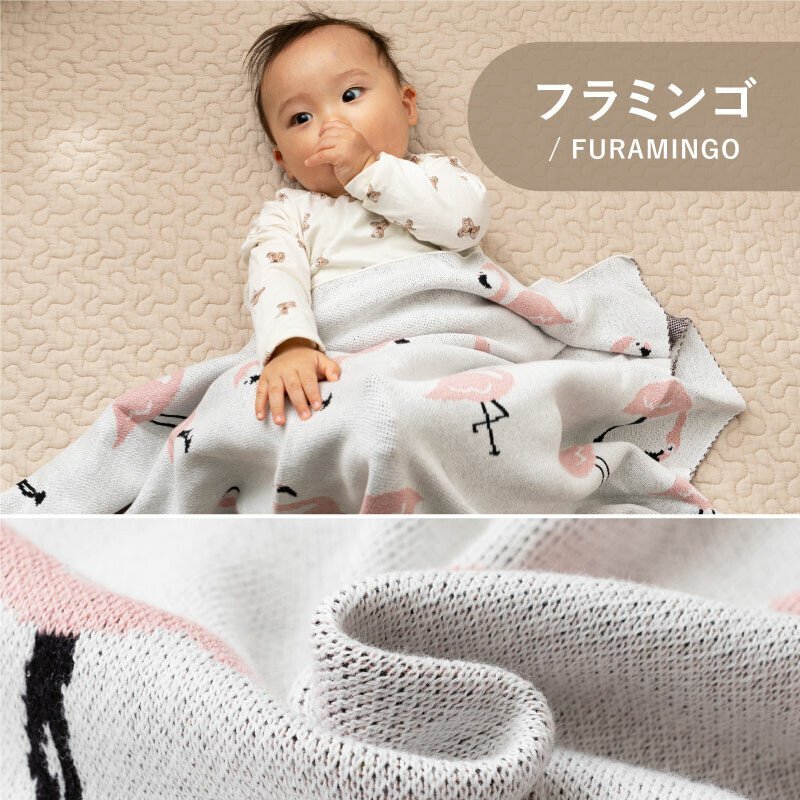 | 即決可@新品【ギフトBOX仕様・ポーチ付き】 ベビーブランケット 洗える 綿100% 約80×100cm/フラミンゴ | ||||||||||||
