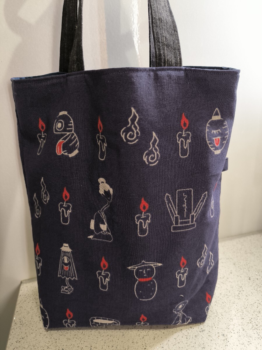 昔ながらのお化けがいっぱい、シンプル手提げ。