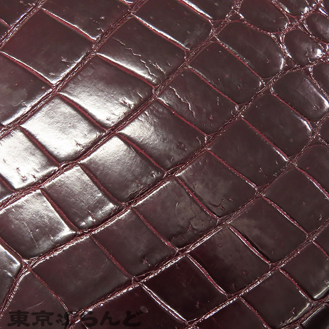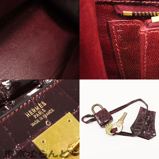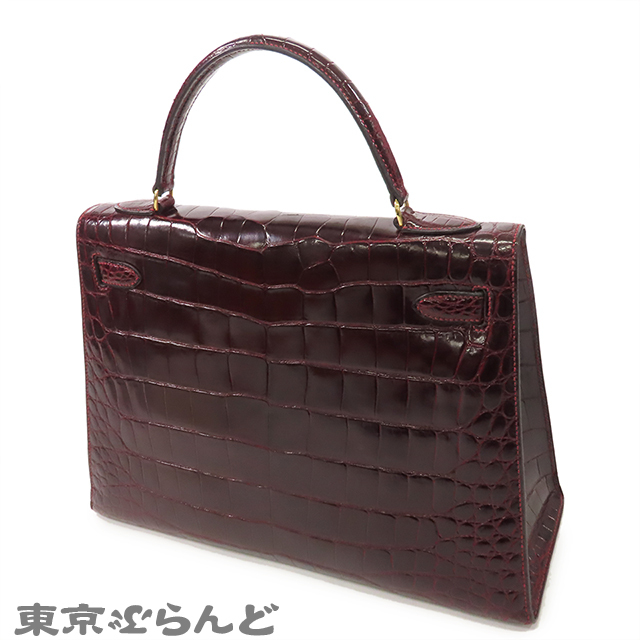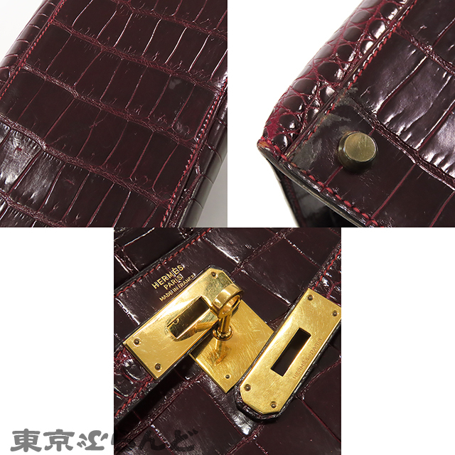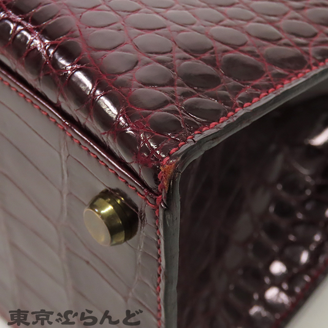 101824475 エルメス ケリー32 〇刻印 ボルドー系 ゴールド金具 ポロサス 外縫 クロコダイル ハンドバッグ レディース ヴィンテージ
