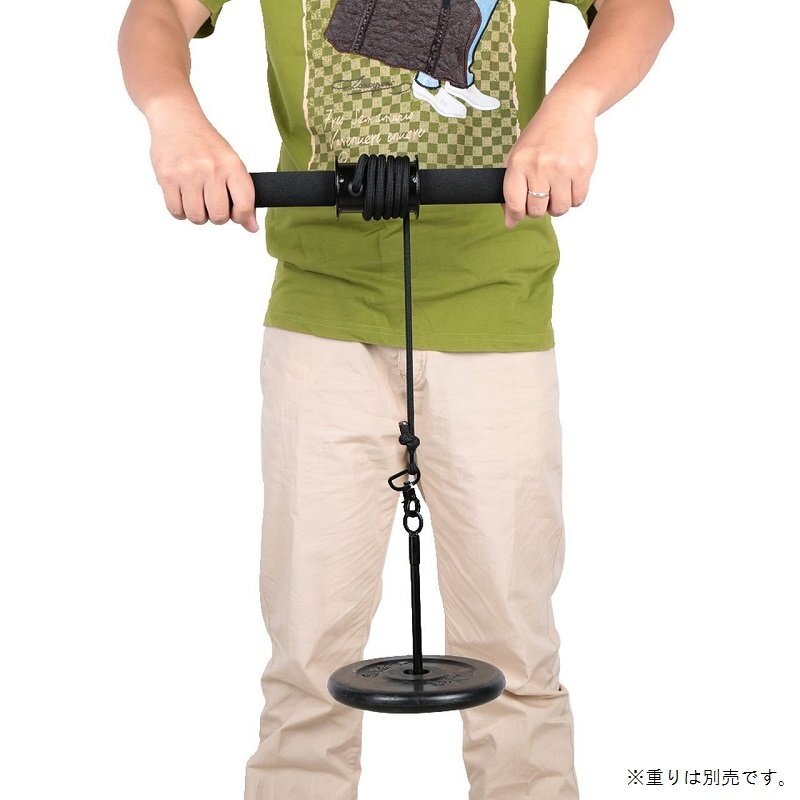 トレーニングリストローラー 重りの巻き上げ下ろしを繰り返してトレーニング 短時間のトレーニングでもOK 重り(プレート)の重さを変えることで 野球、テニス、ゴルフ、柔道等のスポーツや トレーニング方法(例) 1 リストローラーを両手で持ち、腕を伸ばす ・手首と前腕の動きだけでプレートを巻き上げて戻すことで、 ・効果をしっかりと出すために、体が大きく動かないように、 ※輸入品のため基本的に日本語説明書は付属しません。 |