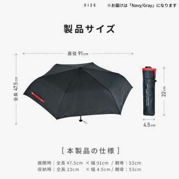 | サイズ | (約)親骨:53cm、全長:47.5cm、直径:91cm 個装サイズ:4.5×4.5×22.0cm |