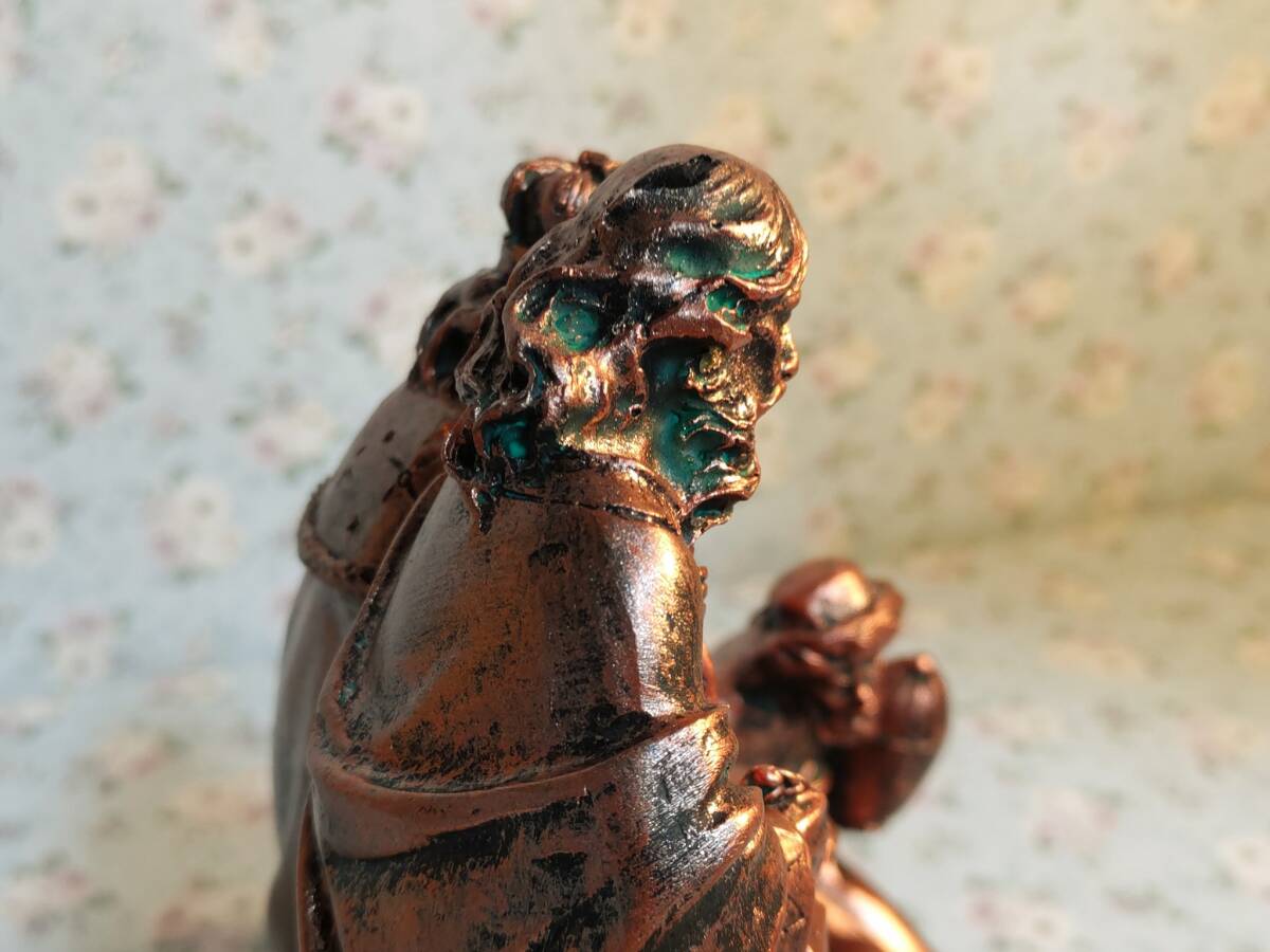 わざと緑色でブロンズの腐食した感じの色付けがされています。
