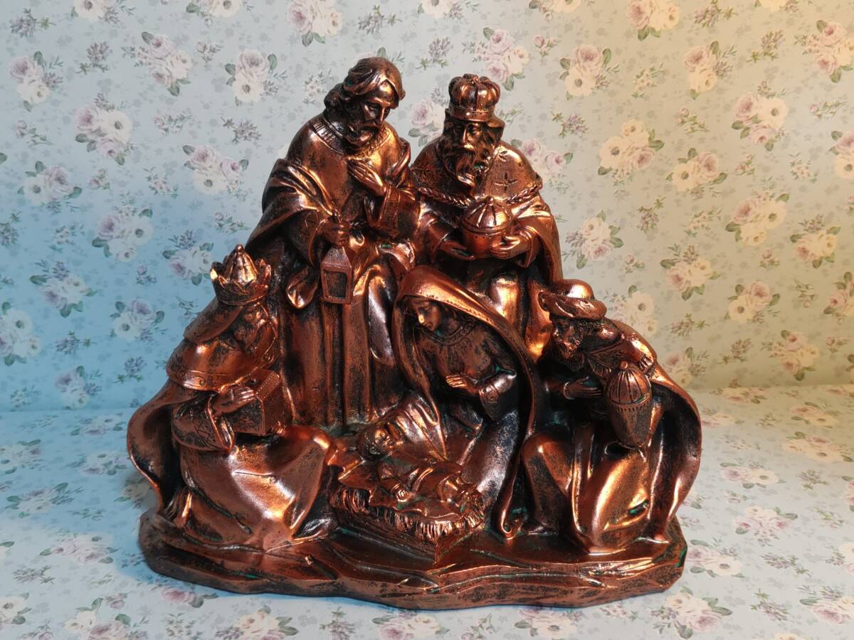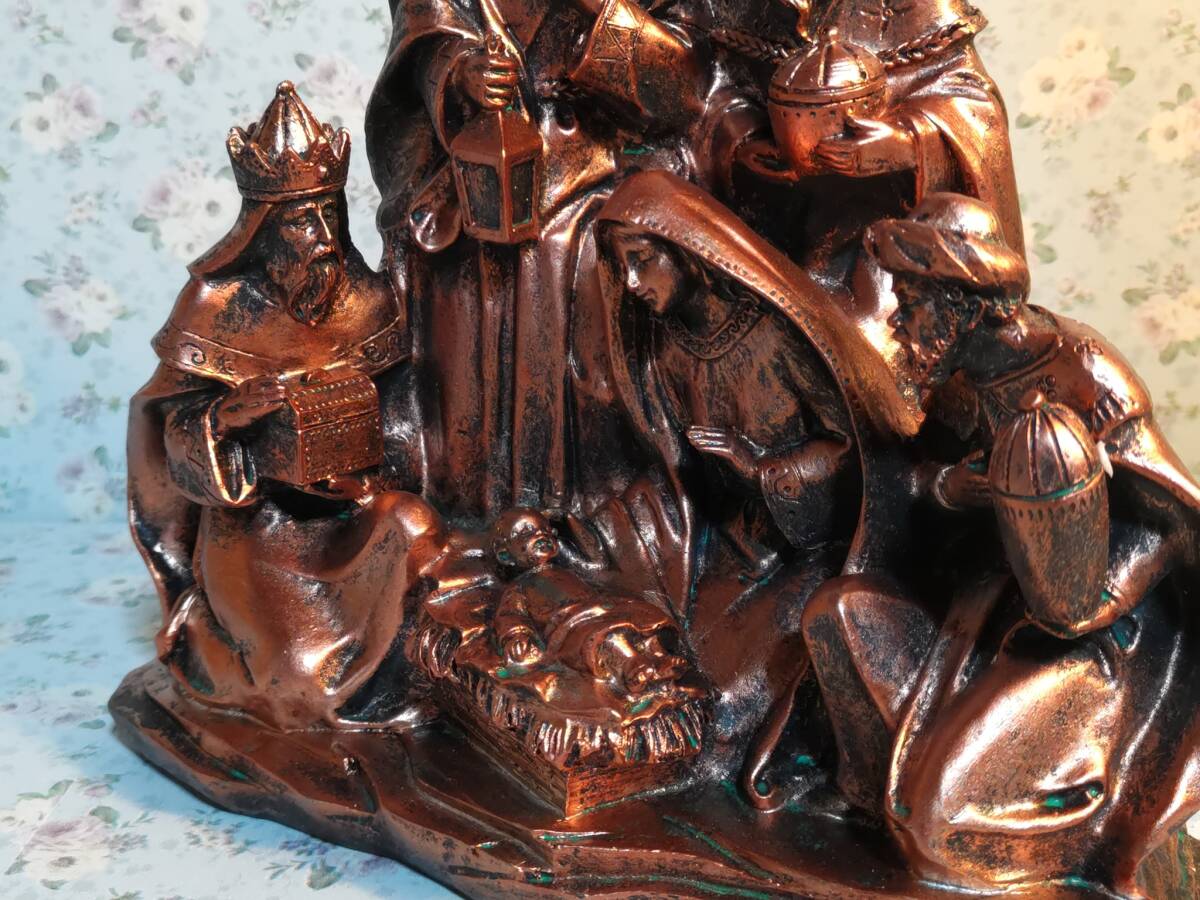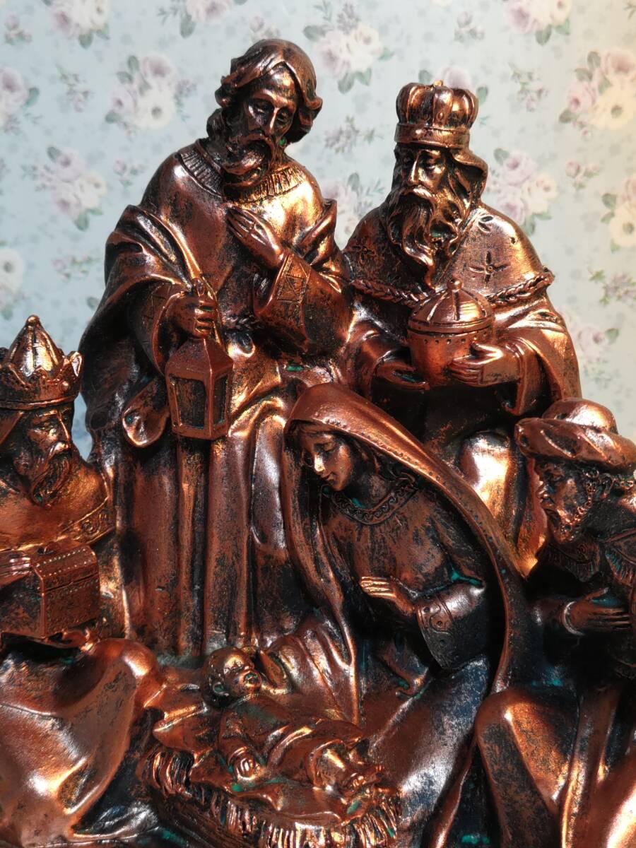 ブロンズ風 未使用品 聖家族プレゼピオ 樹脂製 キリスト降誕 クリスマス イエス・キリスト生誕 クリッペ