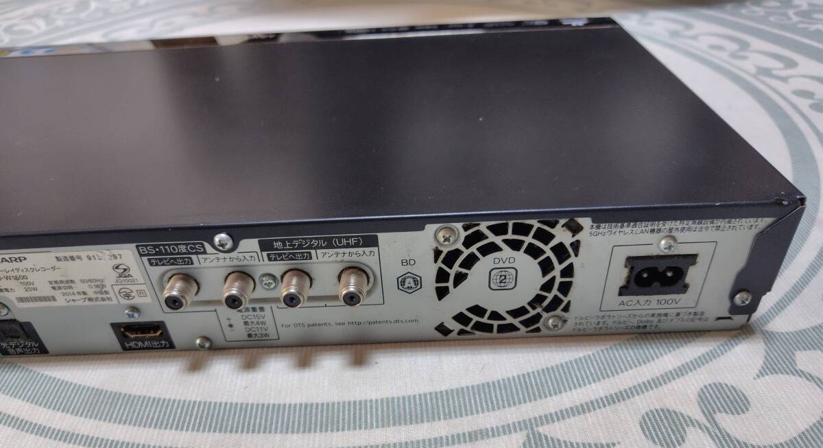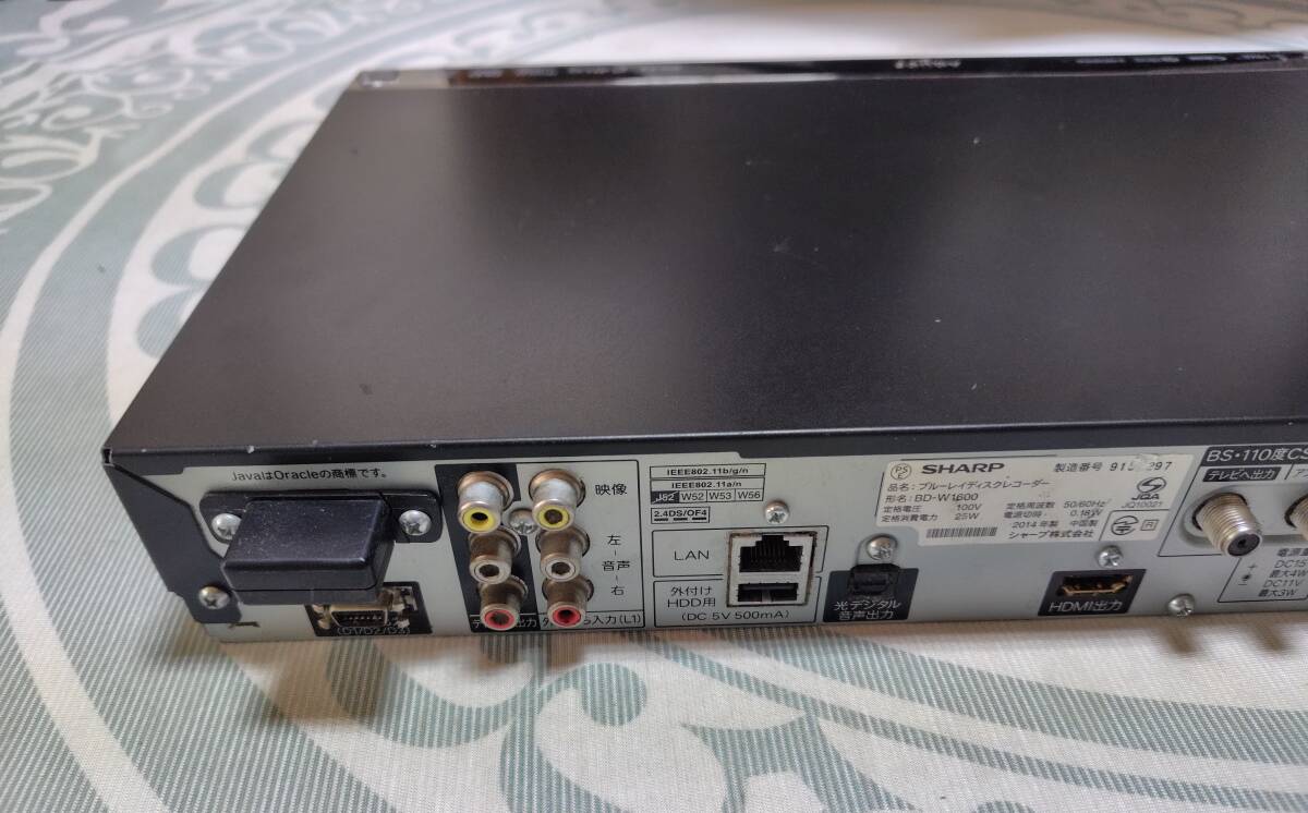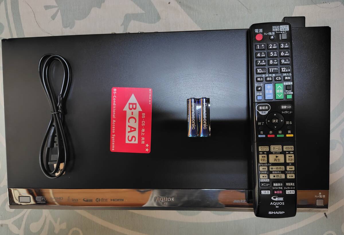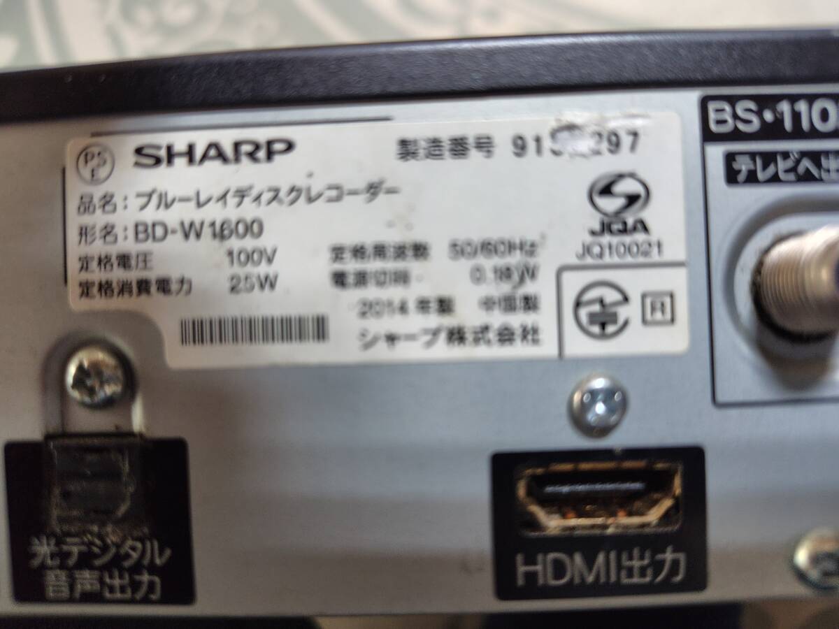 SHARP AQUOSブルーレイレコーダ- BD-W1600 純正リモコン 電源コード 2番組同時録画 3D対応 23