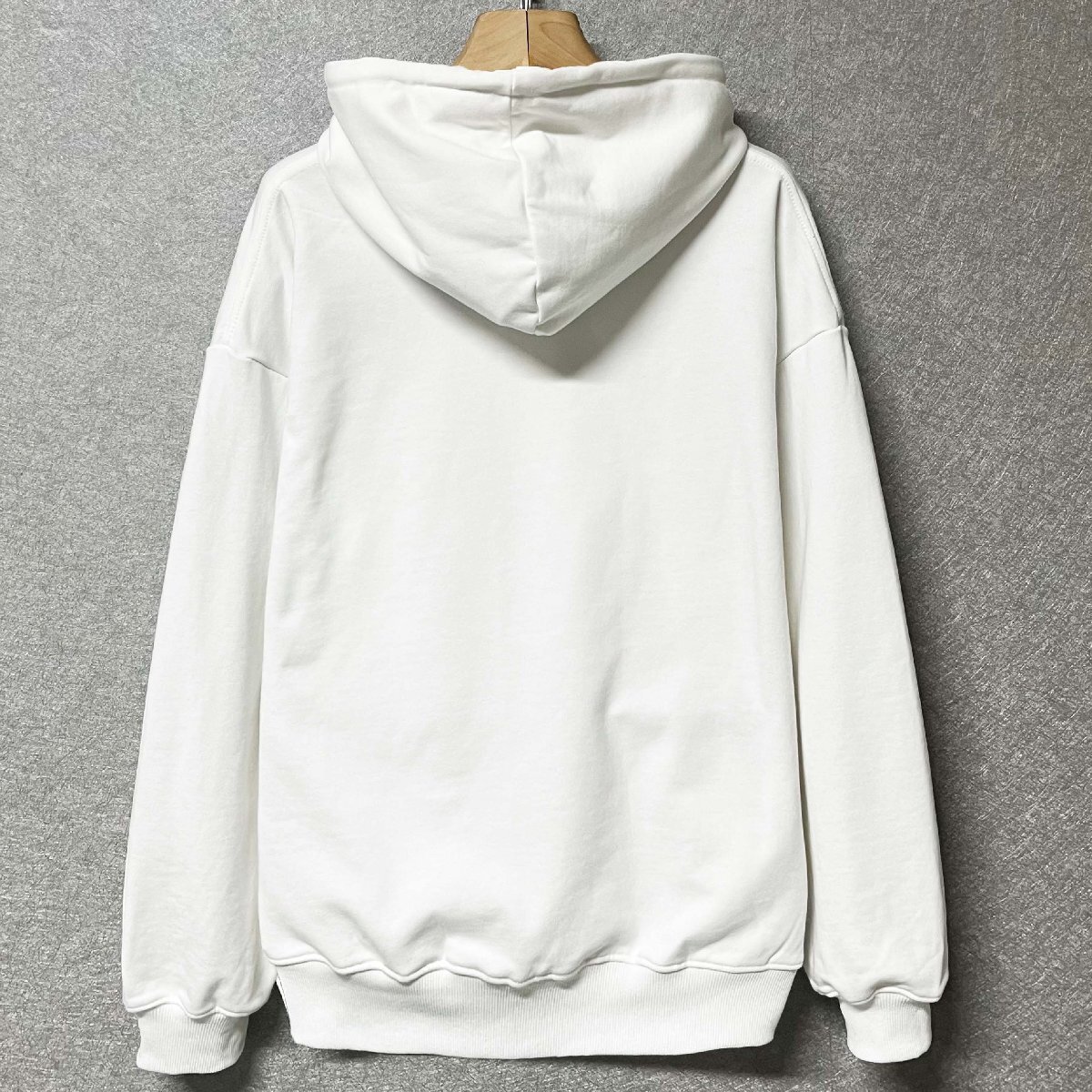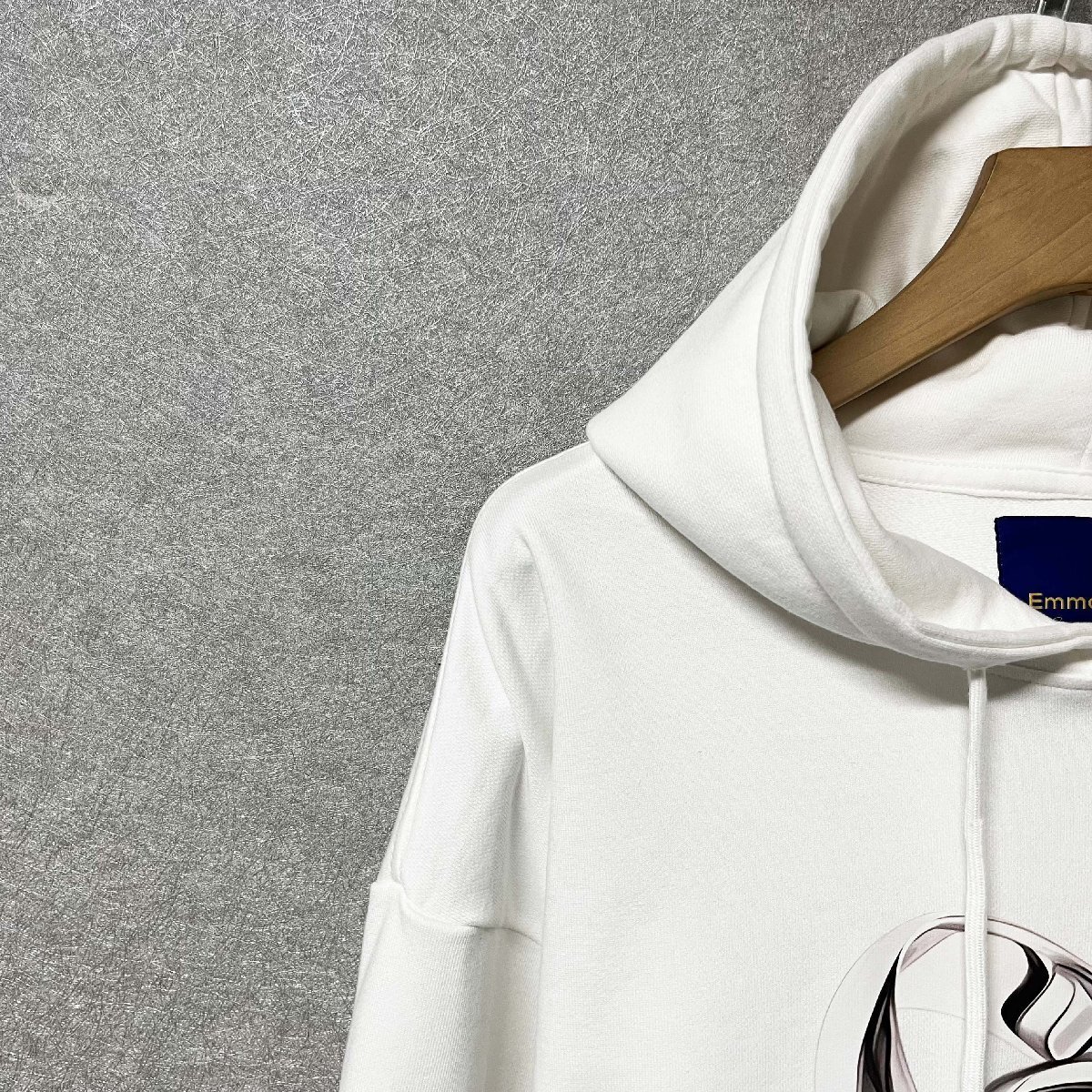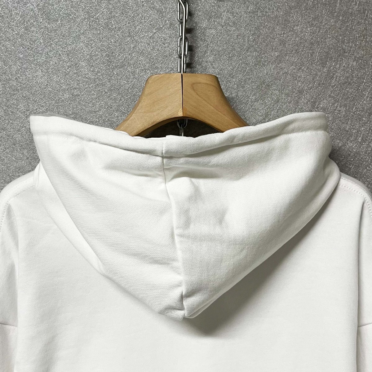 すっきりとしたシルエットとベーシックなフード付きデザインで、どんなスタイルにも合わせやすい万能アイテム。フロントにはシックなカップルリングのプリントが施されており、シンプルながらも洗練された印象を与えます。