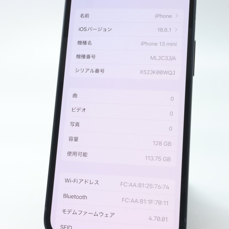 ■機種 : iPhone13 mini 128GB Midnight A2626 MLJC3J/A