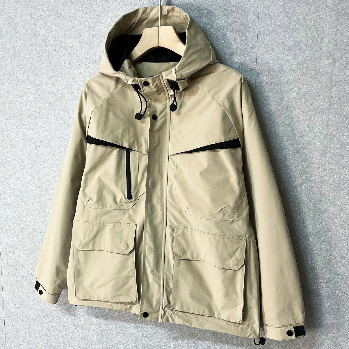 シンプルな無地デザインは、幅広いコーディネートに対応可能。フード付き&立ち襟仕様で首元までしっかりカバーし、風の侵入を防ぎます。複数の大容量ポケットも備えており、スマートフォンや小物の収納にも便利です。