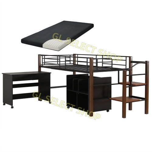 【マット付き】ロフトベッド パイプベッド シングル 耐荷重150kg ロフトベッドロータイプ 棚 収納 北欧風 大人 子供部屋 スチール 耐震