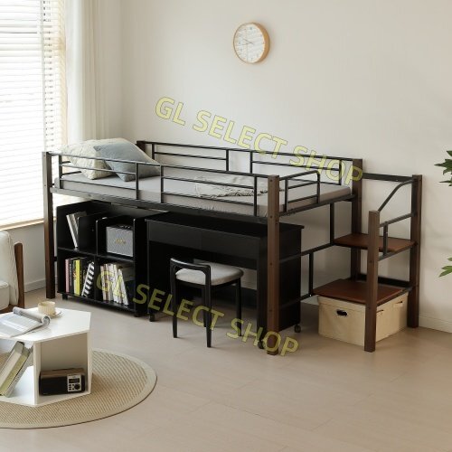 • 【安全に昇り降りできる階段タイプ】 足元の安定している階段タイプは昇り降りしやすく、一段一段安定感があり、大人でもお子様でも安全にご利用いただけます。 また、階段下にはインボックスがぴったり収まり、収納棚にもなり、お部屋の限られたスペースを最大限に活用。 手すりが付いてるから、安心・安全。お子様にもおすすめできるロフトベッドです。