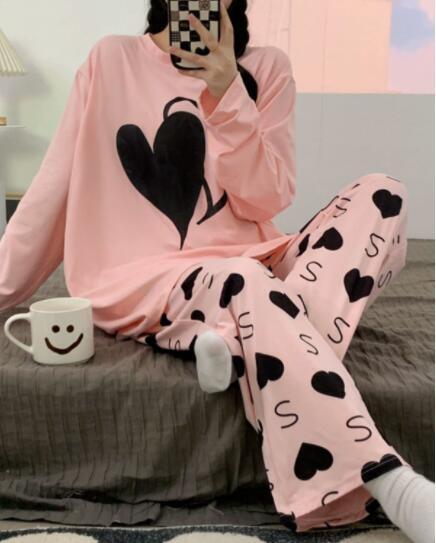 新入荷大人気ルームウェアレディース上下セットセットアップ大きいサイズ パジャマ部屋着春秋 長袖 プルオーバー パンツ(2色L-2XL)