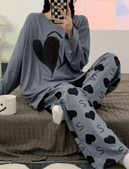 新入荷大人気ルームウェアレディース上下セットセットアップ大きいサイズ パジャマ部屋着春秋 長袖 プルオーバー パンツ(2色L-2XL)