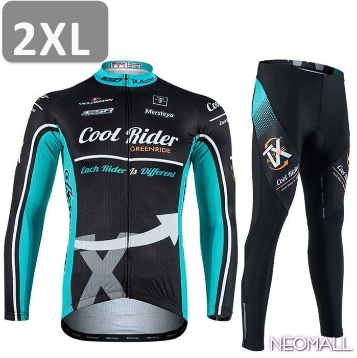 サイクリングウェア mersteyo 長袖 2点セット 2XLサイズ 自転車 ウェア サイクルジャージ 吸汗速乾防寒 新品 インポート品【895】
