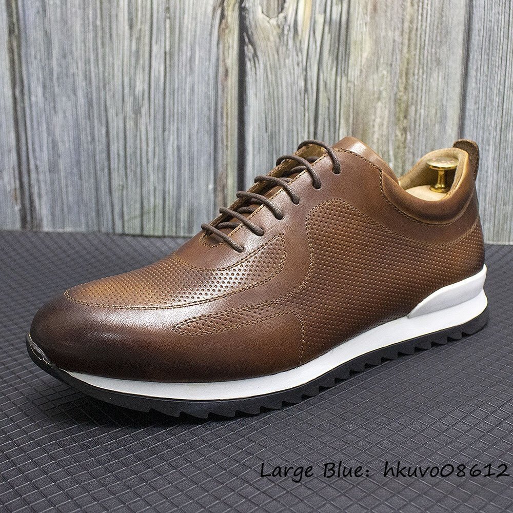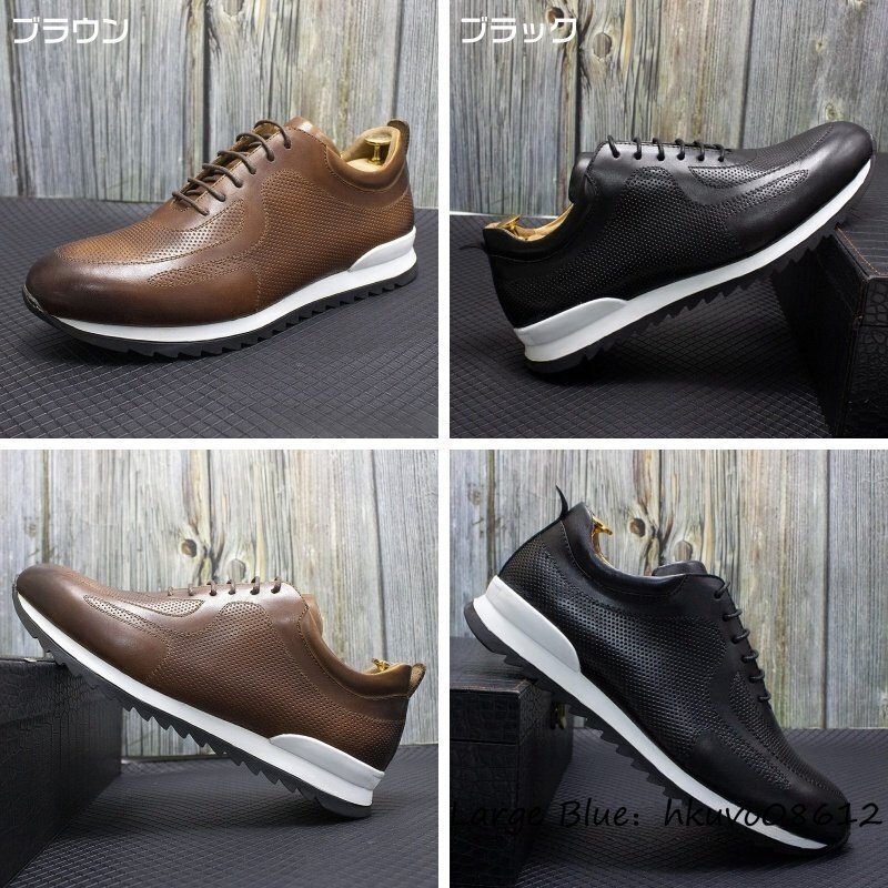 定価11万超★超希少 本革 スニーカー 通気性 職人手作り ビジネスシューズ 運動靴 レザーシューズ 牛革 軽量 カジュアル ブラウン 25.0cm