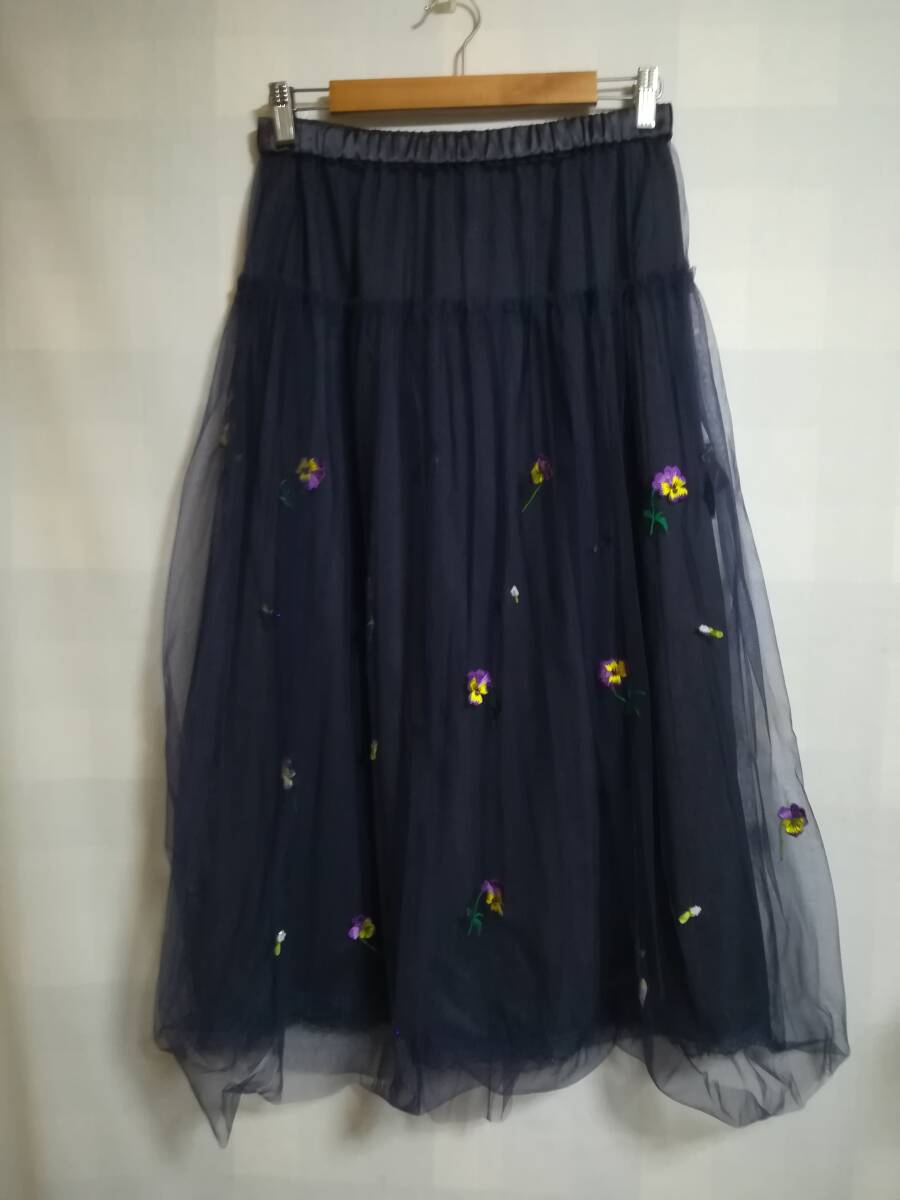 MUVEIL ビオラ刺繍 チュールスカート フラワー ネイビー サイズ40