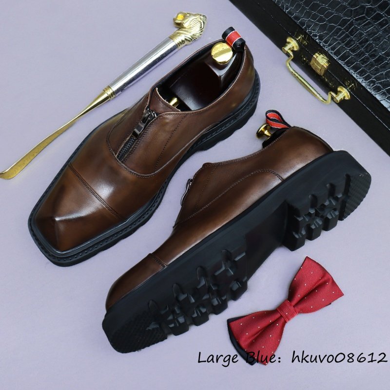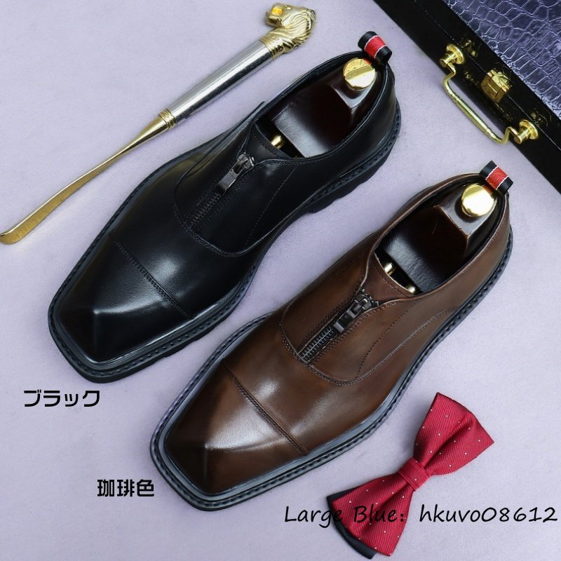 定価11万◆最高級 ビジネスシューズ 本革 厚底靴 職人手塗り上げ レザーシューズ 牛革 スリッポン 身長アップ 紳士靴 革靴 珈琲色 25.0cm