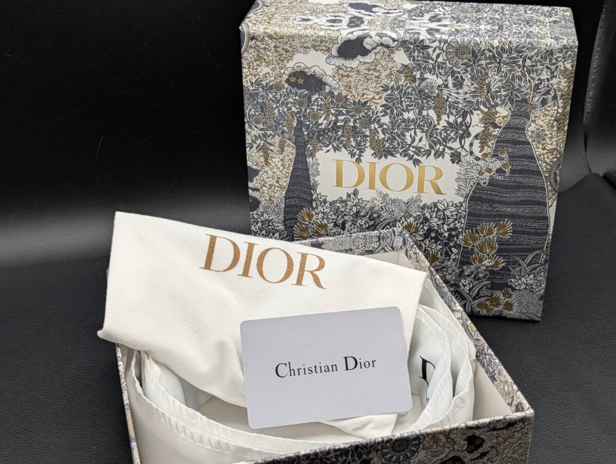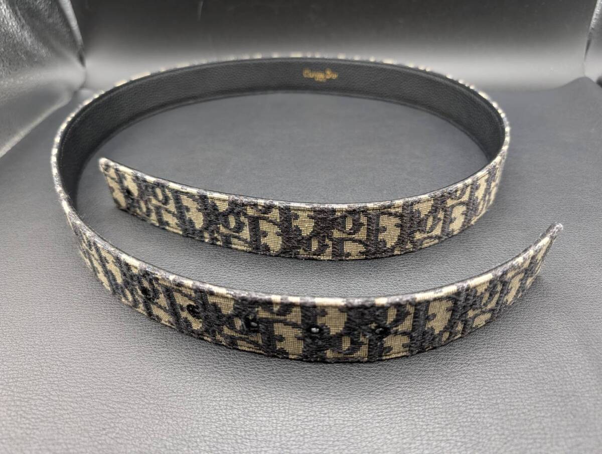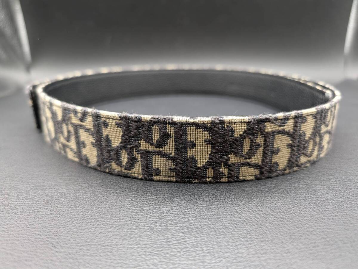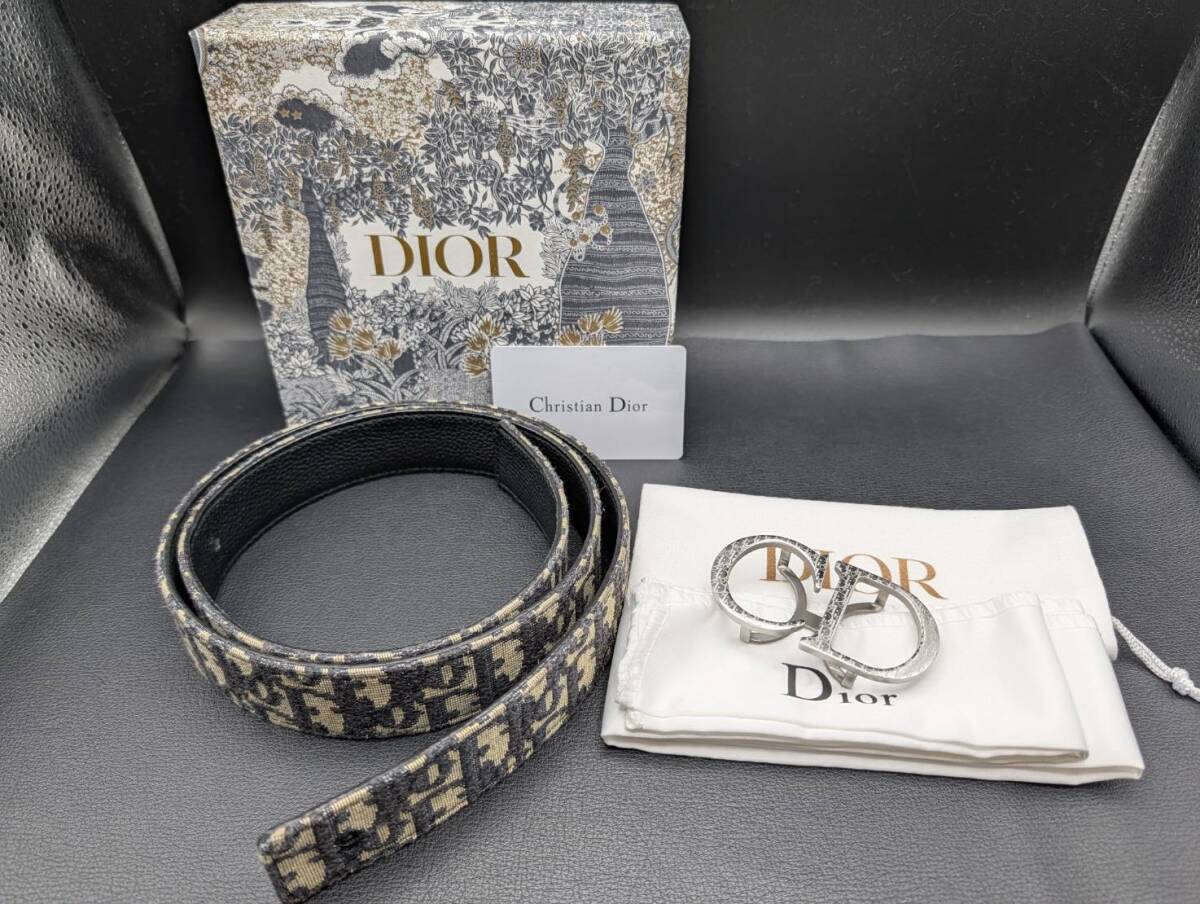H/K『Christian Dior 総柄 ネイビー ベルト バックル セット CD ロゴ』クリスチャン ディオール ファッション アクセサリー 箱 付属品