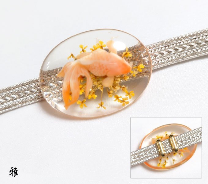 水の中を気持ちよさそうに泳ぐ白金魚の素敵な帯留めをお作り致しました。(*´_`*)