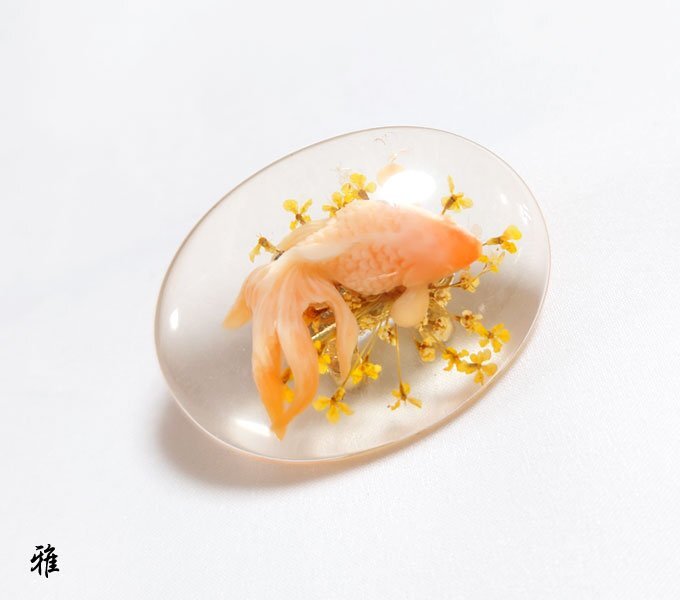 【 雅 】 長い尾が素敵な金魚 帯留め W