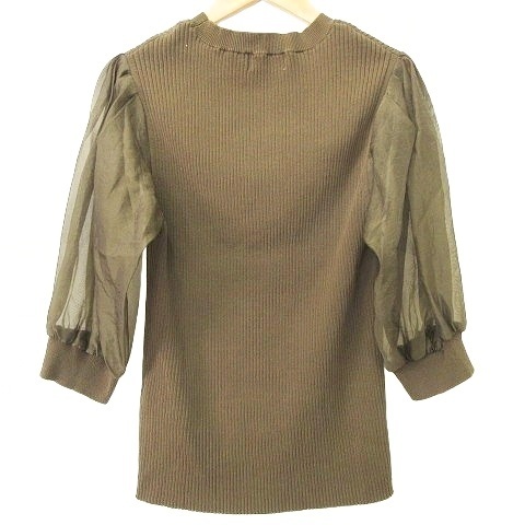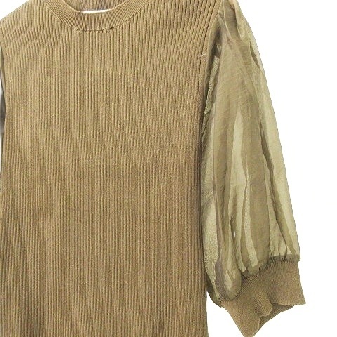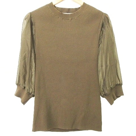 スローブ イエナ SLOBE IENA 23SS シアー ボリュームスリーブ リブ ニット カットソー F カーキ ■YHS6 レディース