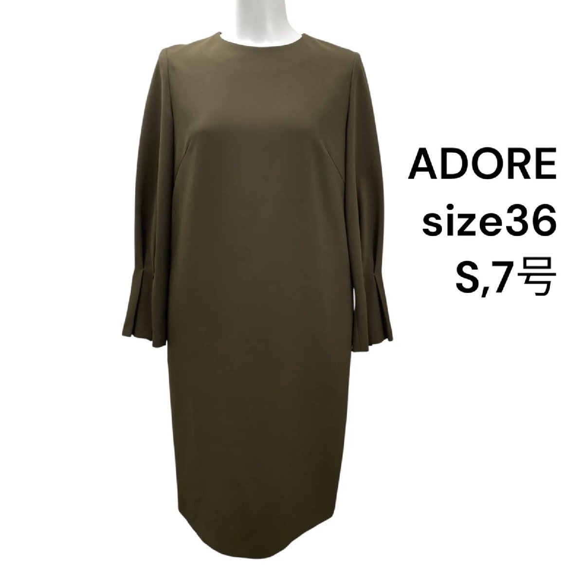 アドーア ADORE ワンピース 膝丈 長袖 カーキ 36、S、7号 レディース S5T149