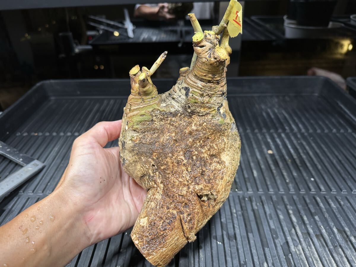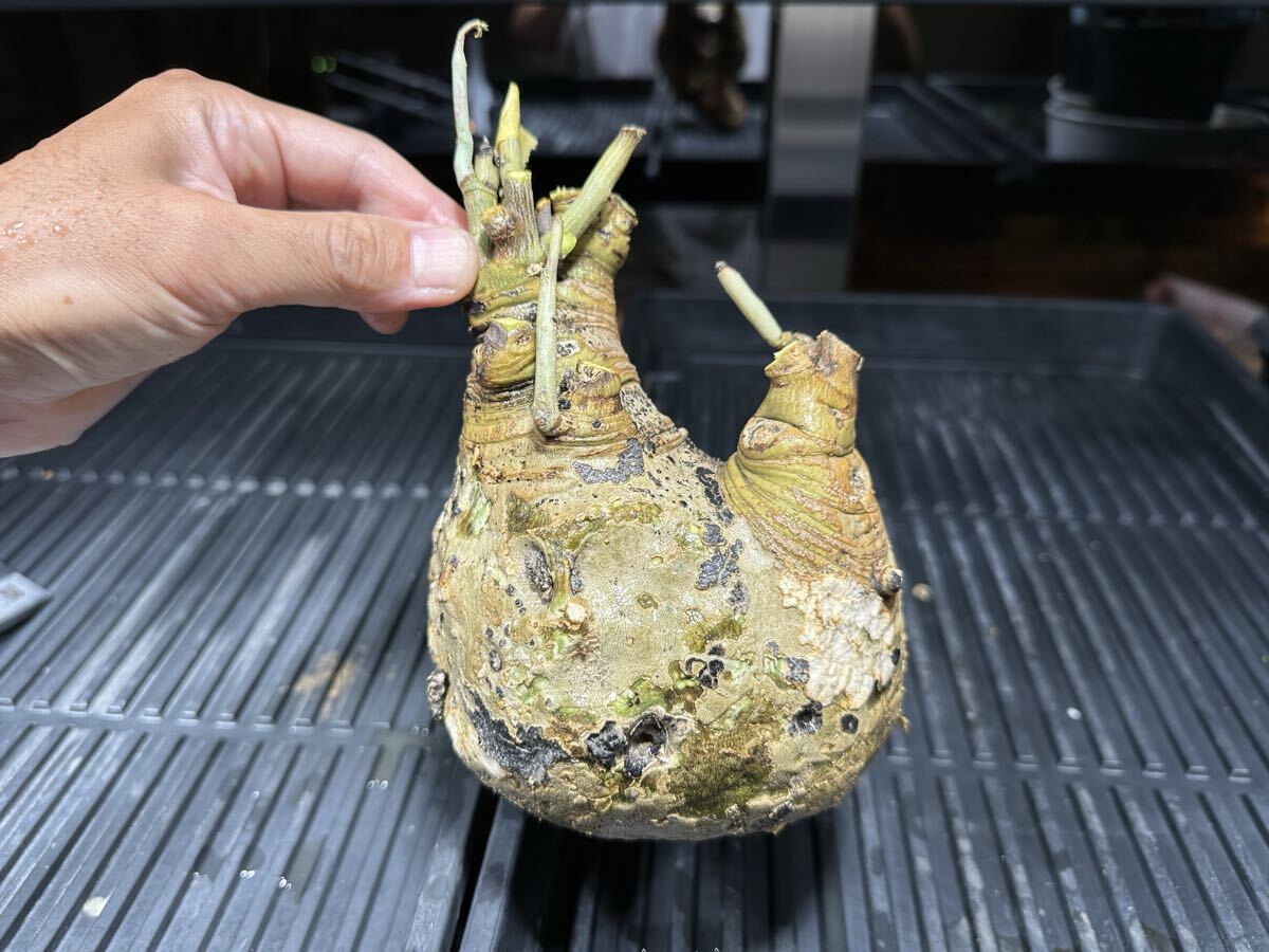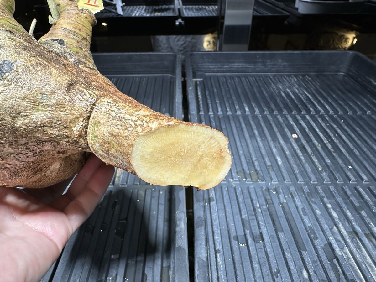 写真撮影日は10/9です。主根を切って腐りが入っていないことを確認しています。撮影後、主根断面を殺菌して乾燥させております。