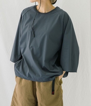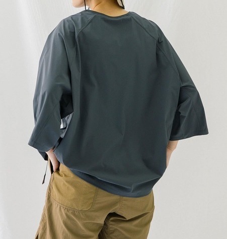 UVカット機能で肌の日焼けをカット。袖下から裾にかけて続きのマチ仕様になっているので、ゆったりとした動きやすいシルエット