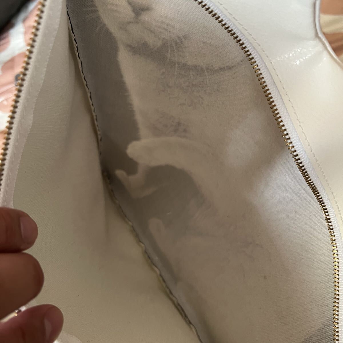 アンダーカバー undercoverの猫柄の転写クラッチバッグです。猫柄は定番でとてもかわいいです。
