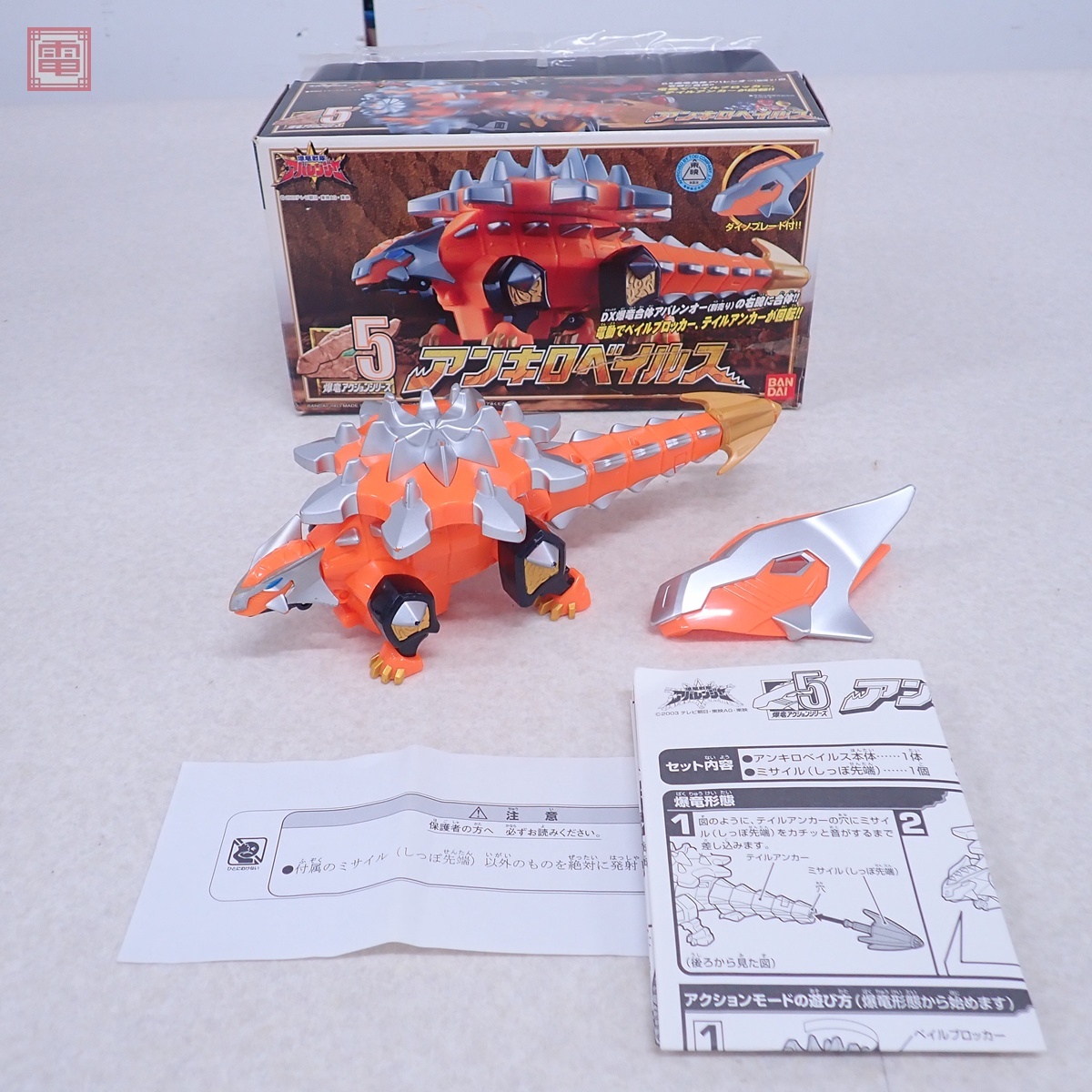 現状品 バンダイ 爆竜戦隊アバレンジャー 爆竜アクションシリーズ ディメノコドン/アンキロベイルス 他 計4点セット ■こちらの商品は【現状品】のため、どの様な不具合が生じましても当店では交換・返金・返品等の対応はできません。 ■ご理解ご納得いただける方のみご入札をお願いいたします。 ※説明書、内プラケースが欠品しているものがあるため【現状品】として出品いたします。 ■外箱にスレ、キズ、汚れ、破れ、ヤケ、黄ばみ、ハゲ、テープの貼付、補修跡があります。 ■本体/パーツにスレ、キズ、汚れがあります。 ■説明書にシワ、汚れ、ヤケ、折れがあります。 ■写真のものが全てです。付属物の有無や状態については写真からご判断ください。 ■付属物については細かいチェックはしておりませんので、万が一、欠品があったり余計な物が入っていたとしてもご了承ください。 ■商品到着後、当店の保証期間中は、商品及び箱や取説、付属品などを1つでも廃棄や破損をしないようにお願い致します。廃棄や破損をした場合、商品に問題があった場合でも対応や返金などの対処ができなくなります。 ■商品によりますが、発売されてから10年以上経過している中古品である事をご理解頂いた上でご入札をお願い致します。なお、新品や美品、また特記事項がある場合は別途明記します。 | |||