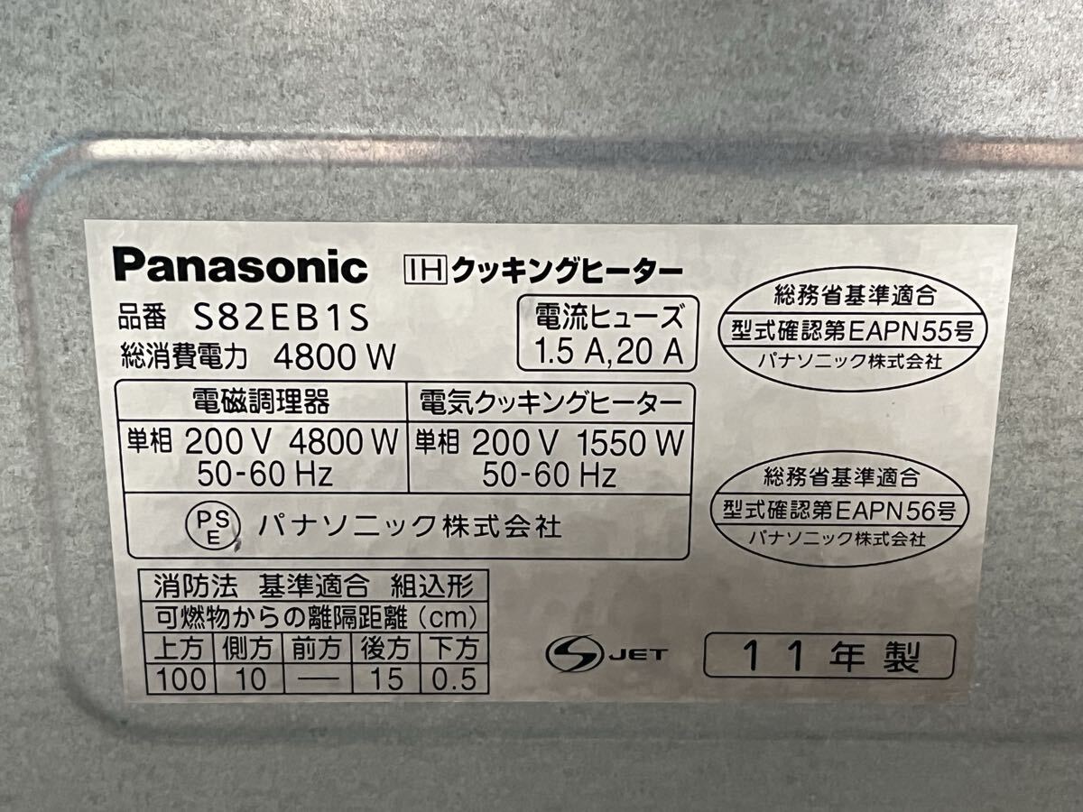 RE7782 パナソニック Panasonic IHクッキングヒーター ビルトインタイプ S82EB1S 3口 幅60cm 通電未確認 現状品 1009