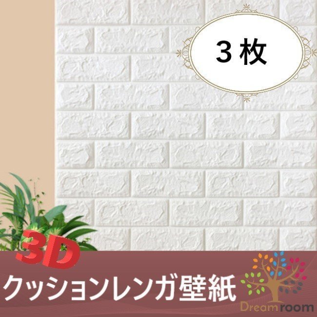 【3枚】高品質 3D クッション 壁紙シール ホワイト レンガ調 糊付き はがせる クロス 70×77cm アンティーク 耐水 抗菌 落書き 傷防止