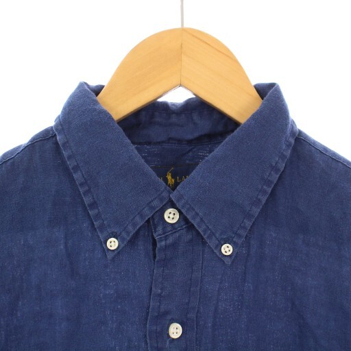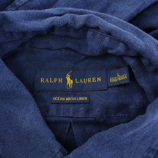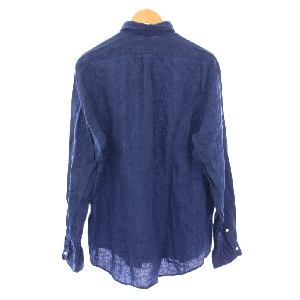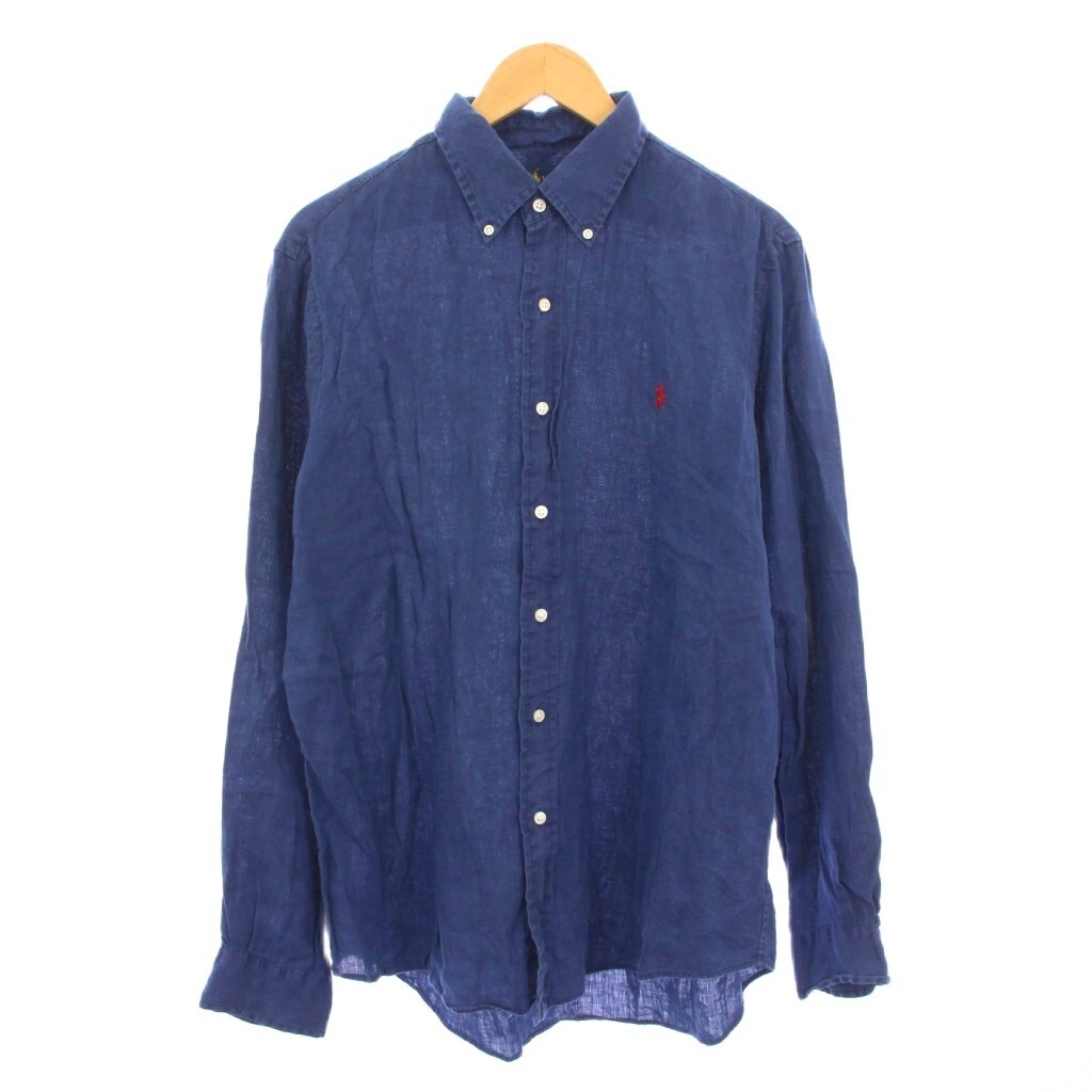 ラルフローレン OCEAN WASH LINEN ボタンダウンシャツ カジュアル 長袖 レギュラーカラー ロゴ 刺繍 ワンポイント 麻 リネン L 紺