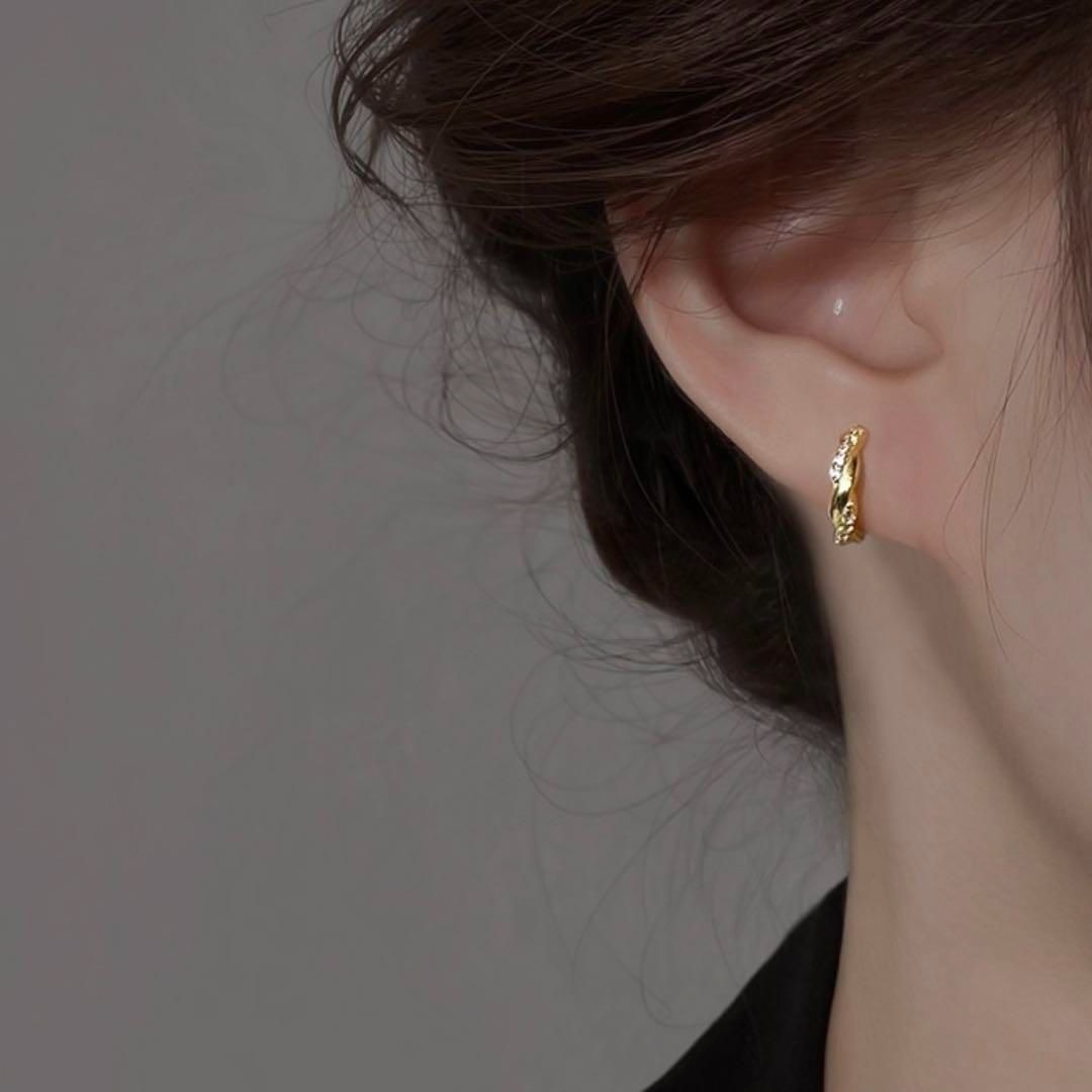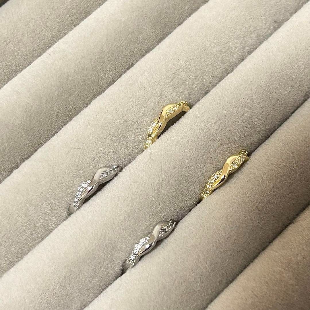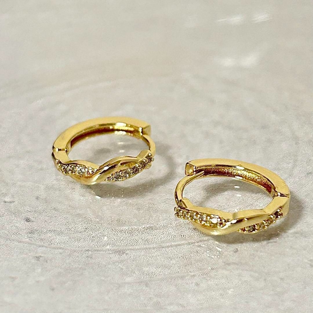 ツイストラインにジルコニアが美しく輝く、洗練された女性らしいデザインのピアスです。