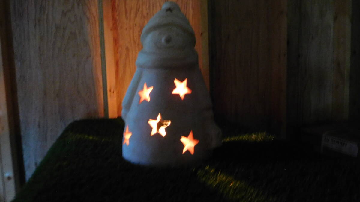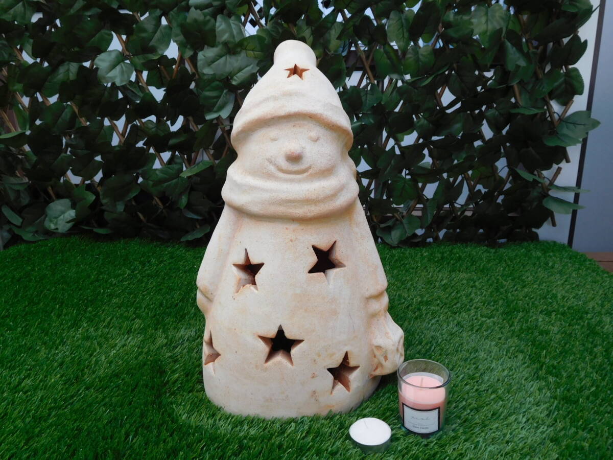 スノーマン Xマスグッズ 焼き物 W22㎝xH40㎝ 部屋や庭の置物 ツリー飾り テラコッタ製 幻想的 キャンドル 格安特価