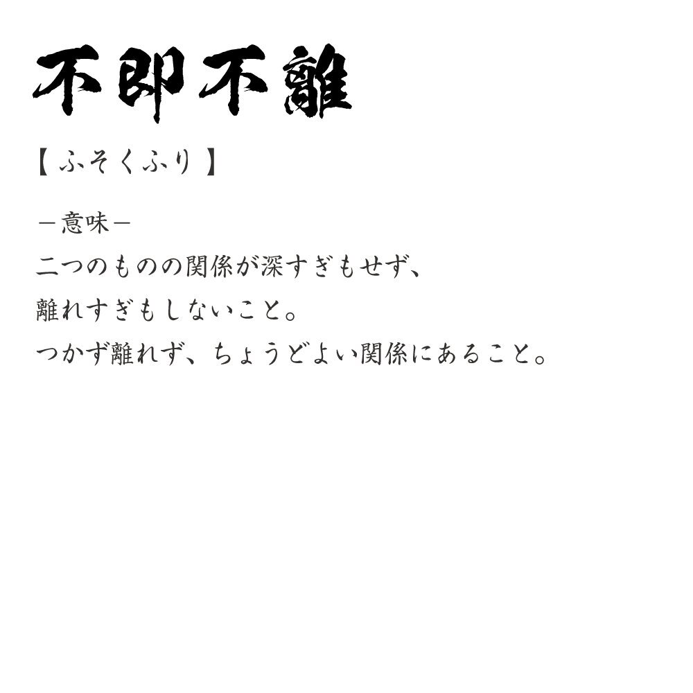 不即不離 ( ふそくふり ) 書道家が書く デザイン Tシャツ 【 四文字熟語 】 メンズ レディース キッズ