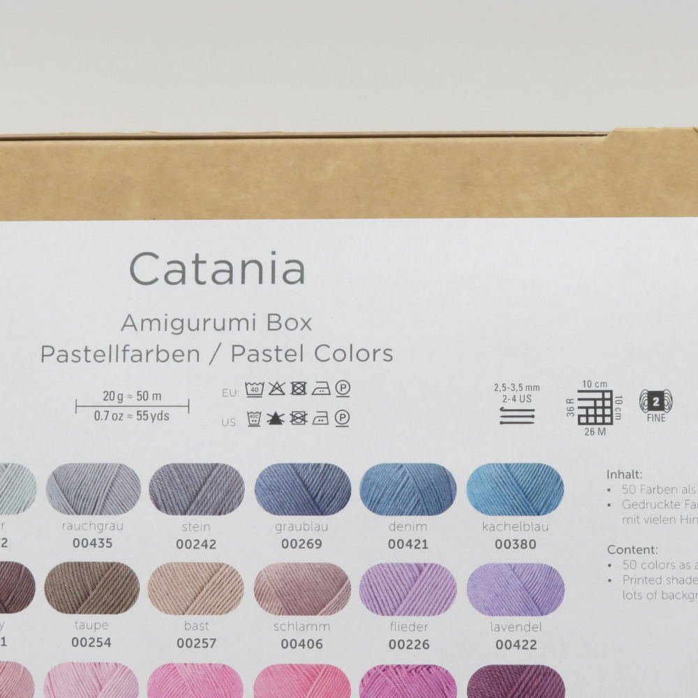| 商品説明 | ドイツの毛糸メーカー・シャッヘンマイヤーのあみぐるみボックスです。 カターニア Pastels 約20g玉巻 約50m 50色セット 推奨使用針:2.5-3.5mm 標準ゲージ:26目36段 | ||