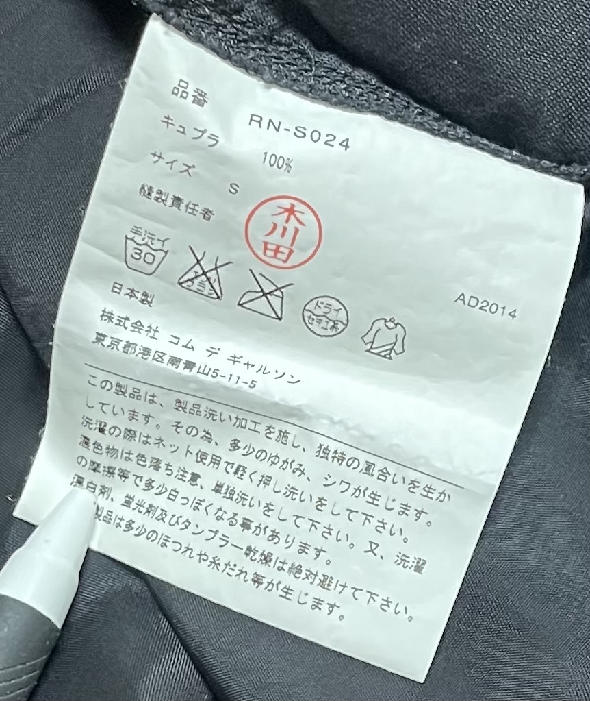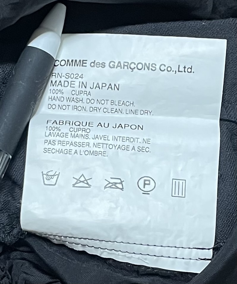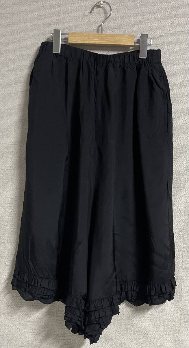 商品説明 | コムデギャルソン(COMME des GARONS)の2014年春夏コレクション(AD2014)より、 品番 RN-S024、キュプラ素材のドロワーズ風フリルショートパンツです。 上品な光沢を持つキュプラ100%生地を使用し、軽く滑らかな肌触りが特徴。 裾にたっぷりとフリルをあしらったデザインで、スカートのようなボリューム感があります。 ワンピースやチュニックとのレイヤードスタイルにもおすすめの一着です。 ウエストは総ゴム+内紐仕様でフィット感を調整可能。 コムデギャルソンらしい繊細な素材使いと立体的なシルエットが魅力です。 【商品詳細】