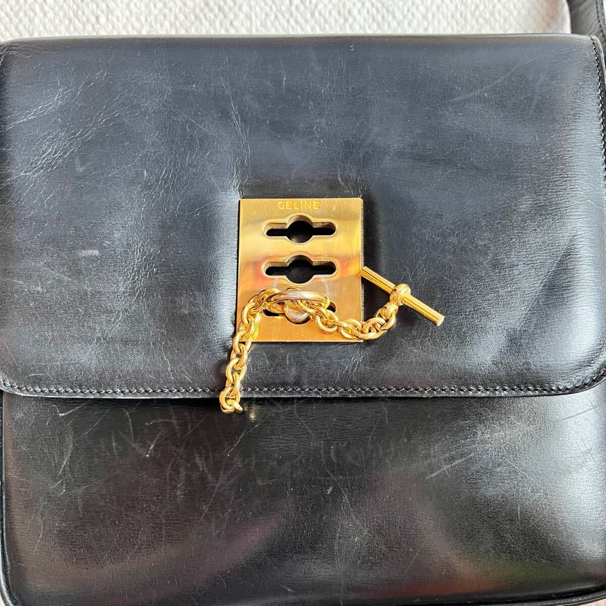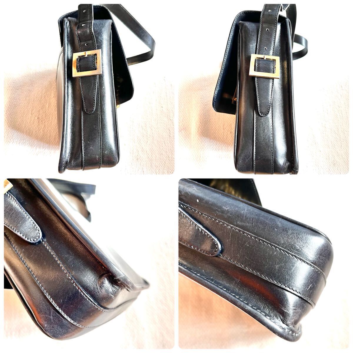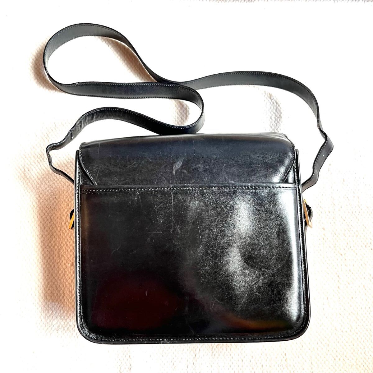 蓋やショルダー紐に型崩れ、全体的に小さな擦れがあります。