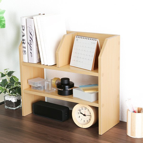 オープンラック ストレージシェルフ 幅57cm 卓上ラック 棚上 収納棚 木製 木製ラック 木目 卓上 インテリア コンパクト ナチュラル
