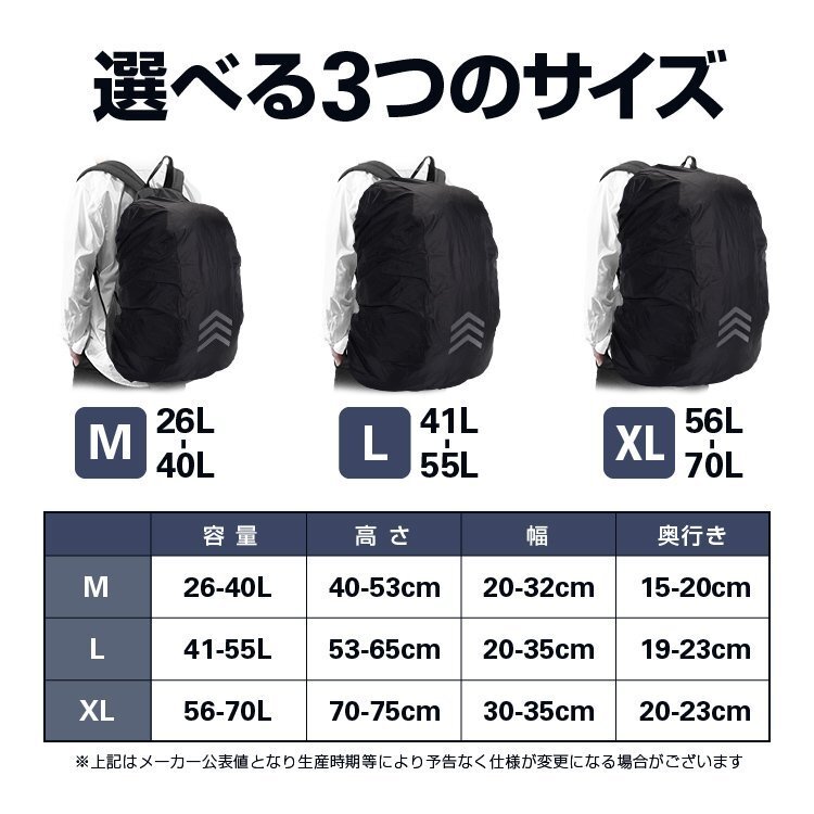 ◆リュックカバー 26-40L/41-55L/56-70L 強力撥水加工 反射材付き 夜間安全 軽量 携帯性抜群 防水ザックカバー レインカバー 登山 自転車 アウトドア 雨、雪からバックパック保護 耐摩耗性 【Lサイズ】AROWRUCB300