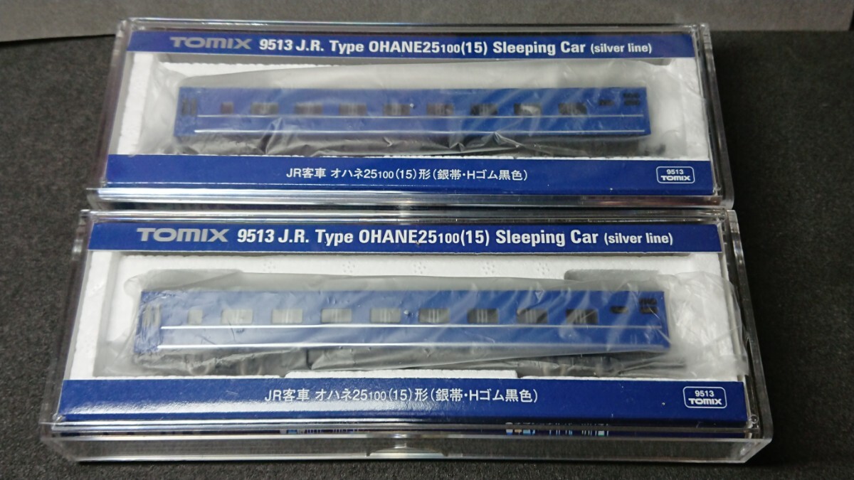 TOMIX 9513 JR客車 オハネ25-100(15)形(銀帯・Hゴム黒色)二両セットになります。