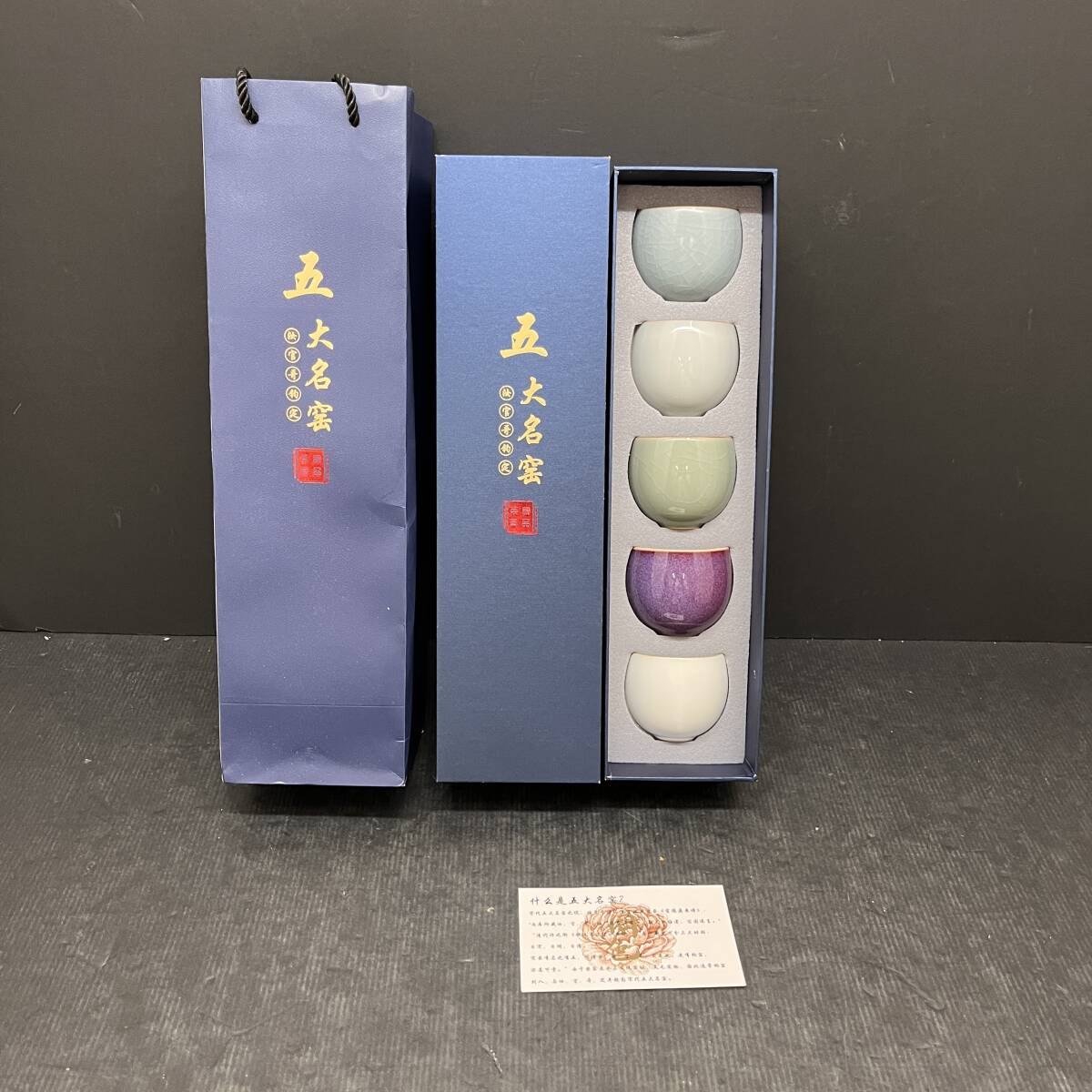06w14959★1円~★ 中国茶器 五大名窯 湯呑5個セット 中古