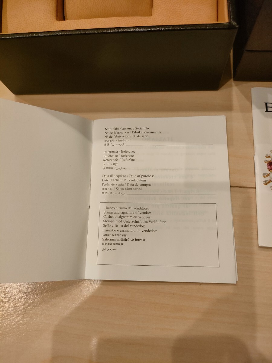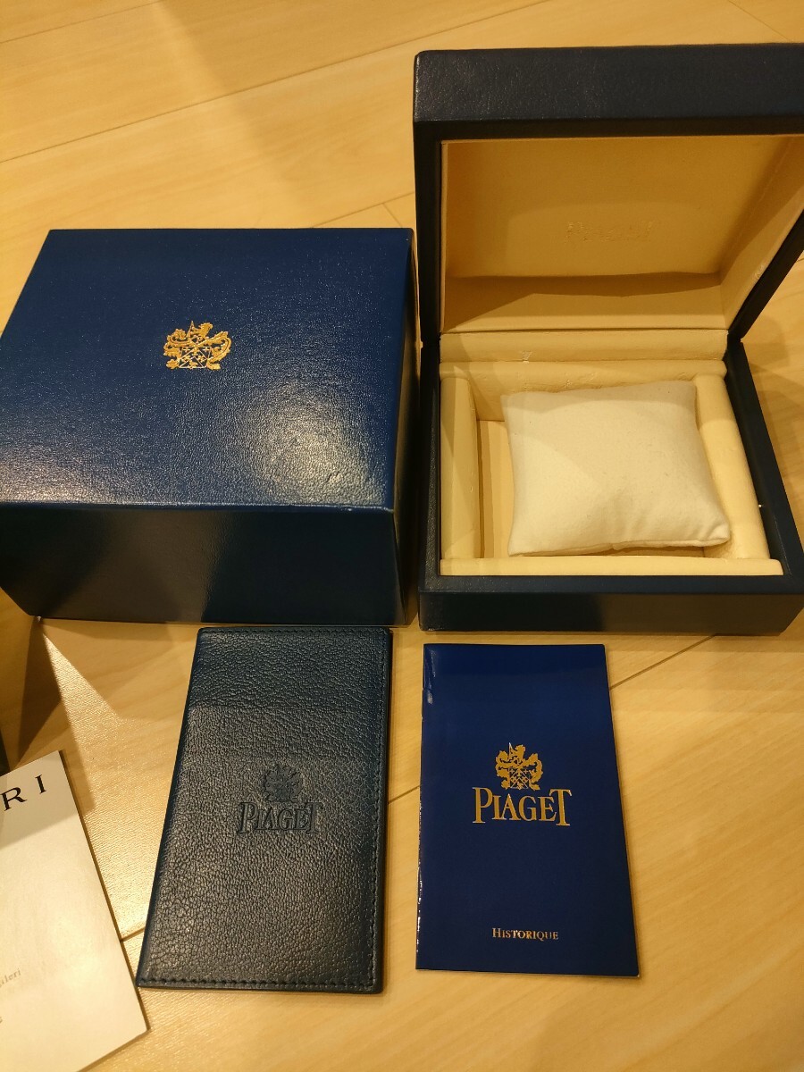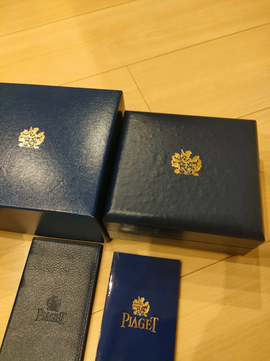 あくまでオマケですが、ピアジェの時計ボックスもお付け致します(枕は代用品)。外箱は綺麗ですが内箱は剥がれ等劣化が始まっております。