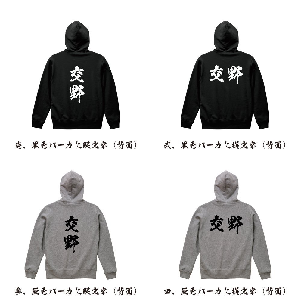 交野 書道家が書く デザイン フルジップ パーカ 【 大阪 】 メンズ レディース キッズ