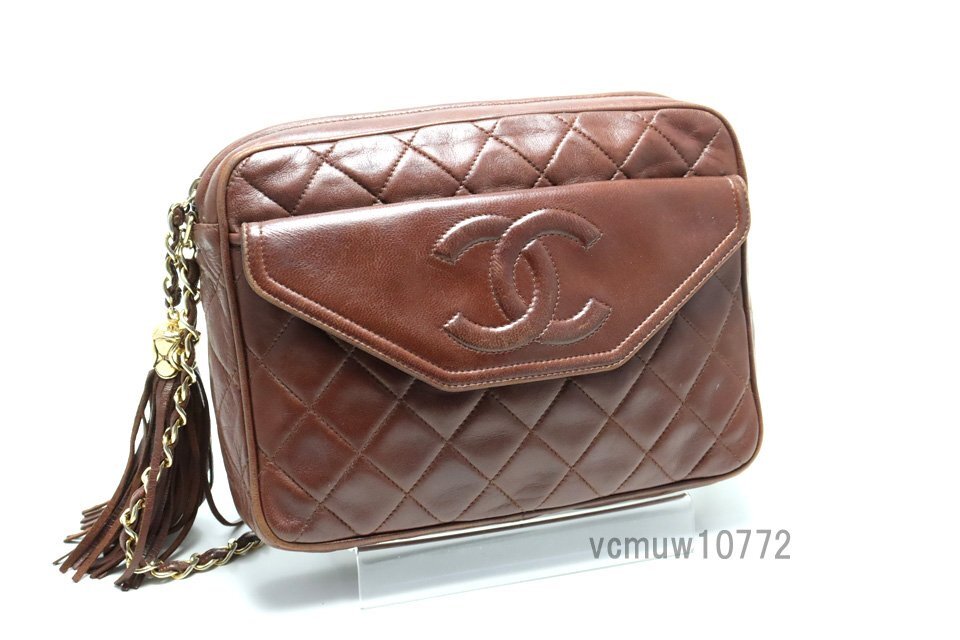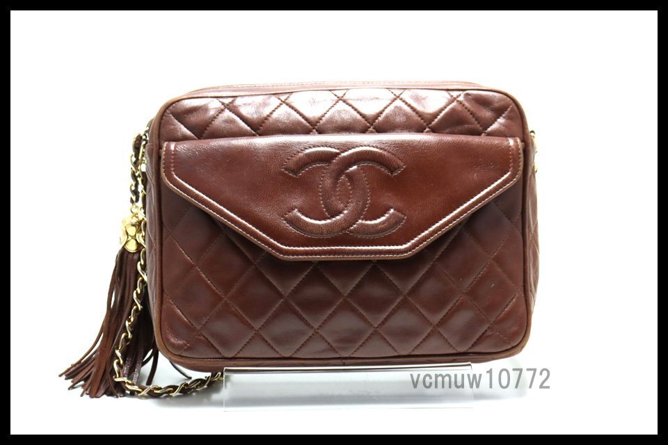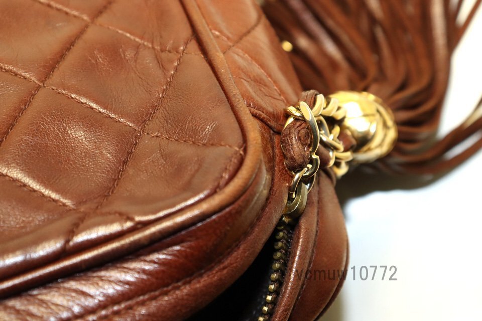 希少美中古■CHANEL 1番台 マトラッセ フリンジ GD金具 レザー チェーンショルダーバッグ シャネル■1002ep133-6D